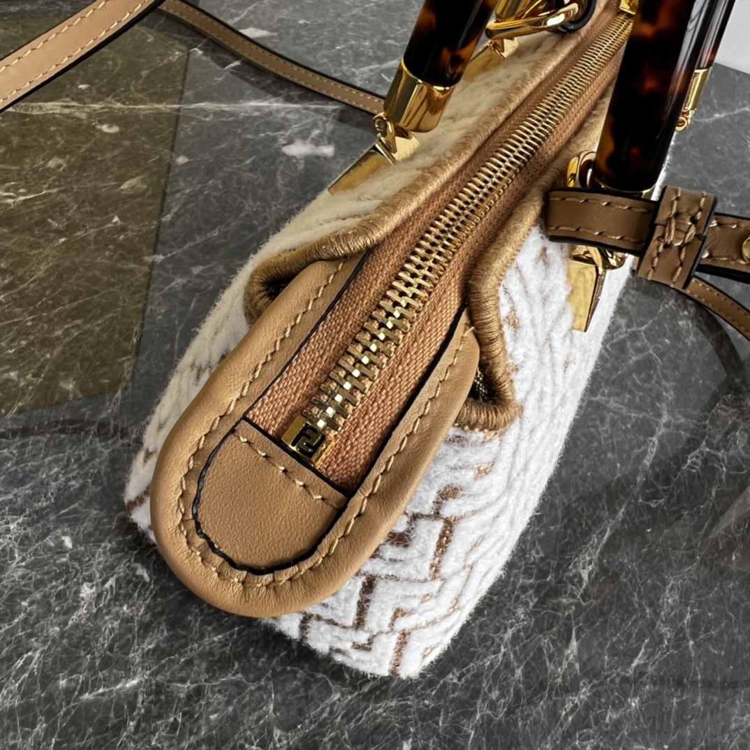 包包拥有纯净简约廓形的ByTheWav结合玳瑁手柄,原色拉菲草编织,饰有织锦效果雪尼尔FF图案刺绣,形成独特手感。这款运动型时尚迷你手袋从白天到晚上皆适宜携带,可通过可拆卸迷你背带斜挎,也可直接手拿,包包虽小,但容量极好!