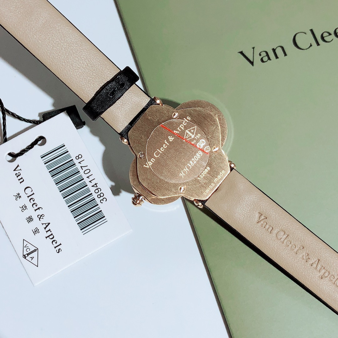 梵克雅宝-Van Cleef&Arpels,Alhambra系列腕表继续沿袭梵克雅宝的标志性图案🍀散发恒久隽永的优雅气息,精美镶钻设计,环绕着花形表壳,使之好像镶嵌在白色珍珠贝表盘之中,此款腕表旨在向珠宝设计致敬💎💎💎表带:娟丝/牛皮 机芯:瑞士石英 直径:29.3mm 配套:正品防灰尘包装布袋及全套购物证书📄🛍