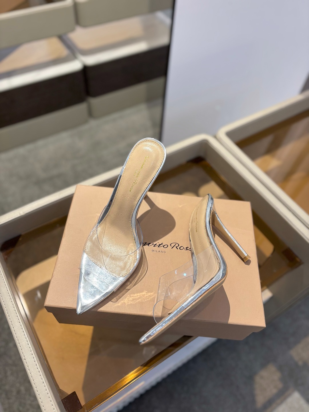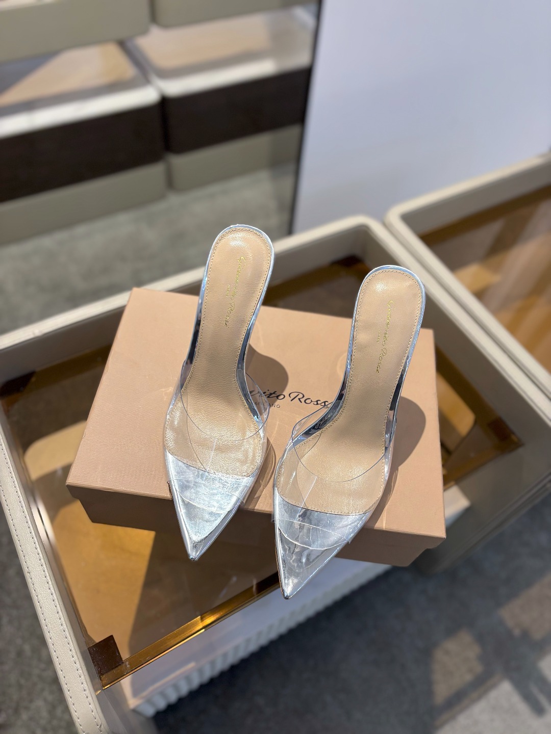 {半拖} 吉安维托·罗西 Gianvito rossi 💕 Eiko Stiletto,轻松移动。这款 Gianvito Rossi 拖鞋采用配有精致的胶片,可抚摸脚踝并滑过脚部。凉鞋搭配细高跟,性感而精致。💕️ 💘吉安维托·罗西 (Gianvito Rossi) 秉承了其传统意大利工艺,专注精巧细节,打造优雅女人味,每一双吉安维托·罗西 (Gianvito Rossi) 的女鞋在设计之前都会将女性曲线比例考虑在先。其次在继承了塞乔·罗西 (Sergio Rossi) 优雅的基础上,也更加年轻时髦,以鲜艳的颜色和讲究的线条设计塑造时尚魅力💝 ꫛꫀꪝ Go➫ 材质: ❶鞋面: 胶片 ❷内里垫脚: 进口优质山羊皮 ❸跟高:10.5𝙘𝙢和8.5cm ❹鞋底:意大利牛皮大底 ❺码数:𝟑𝟓-𝟒𝟏(𝟒𝟎/𝟒𝟏定制不退换) ❻颜色:9色系发售! ❼包装:全套原版包装 ❽等级:顶级版.