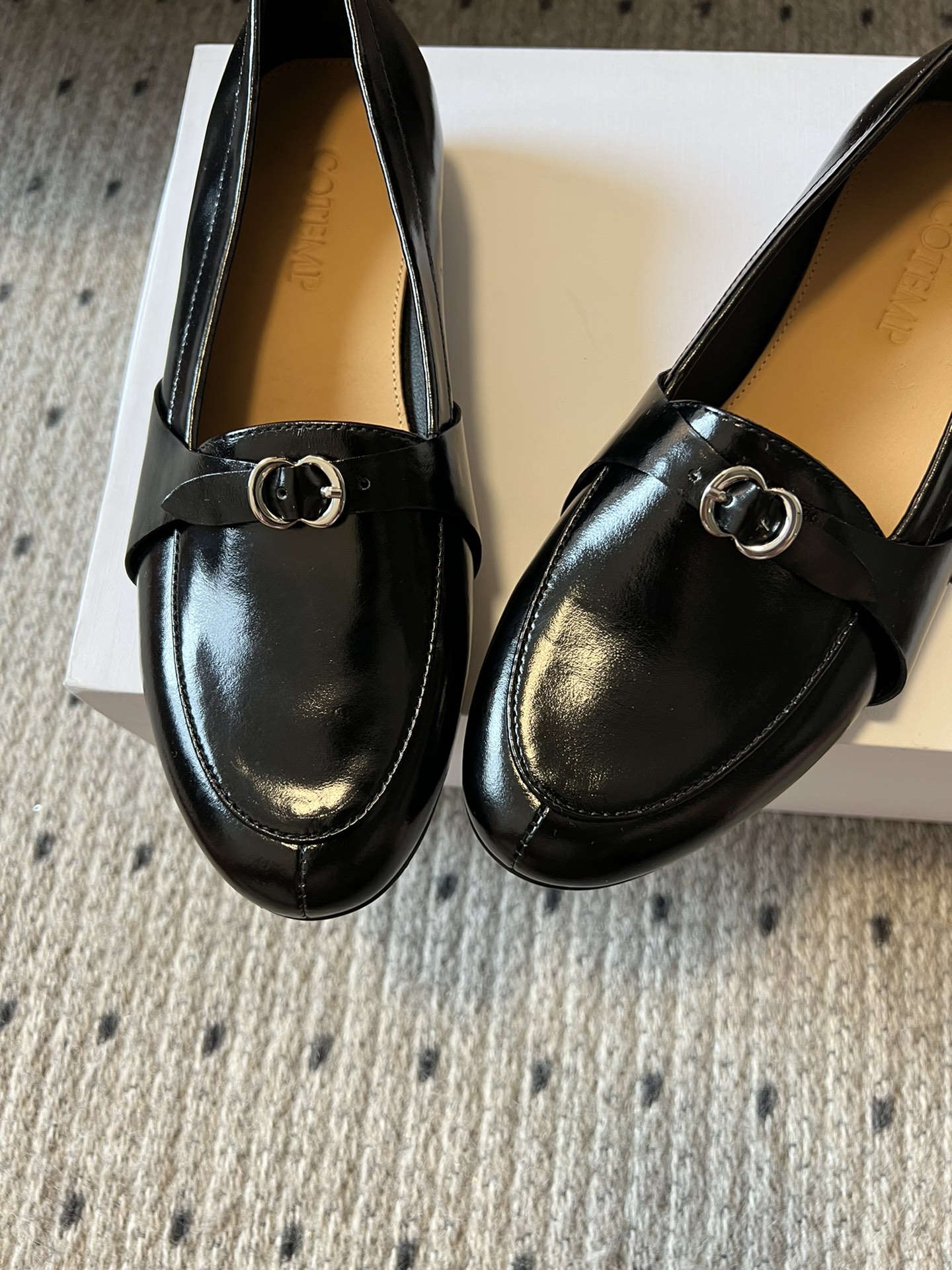 Cotem/新款时髦乐福鞋 BahatiLoafer 延续恒久的古典与舒适,独特的细窄圆头鞋型为鞋体的中性基调注入更多精致考量,刻画一个更鲜活的、不拘小节的艺术家形象,标志性的金属巴克提扣位于鞋头处,巧妙融合古典思绪与品牌巧思。 鞋面:超软牛油皮 内里:羊皮 垫脚:牛皮 大底:真皮注塑大底 码数:35-39(40订做不退换).