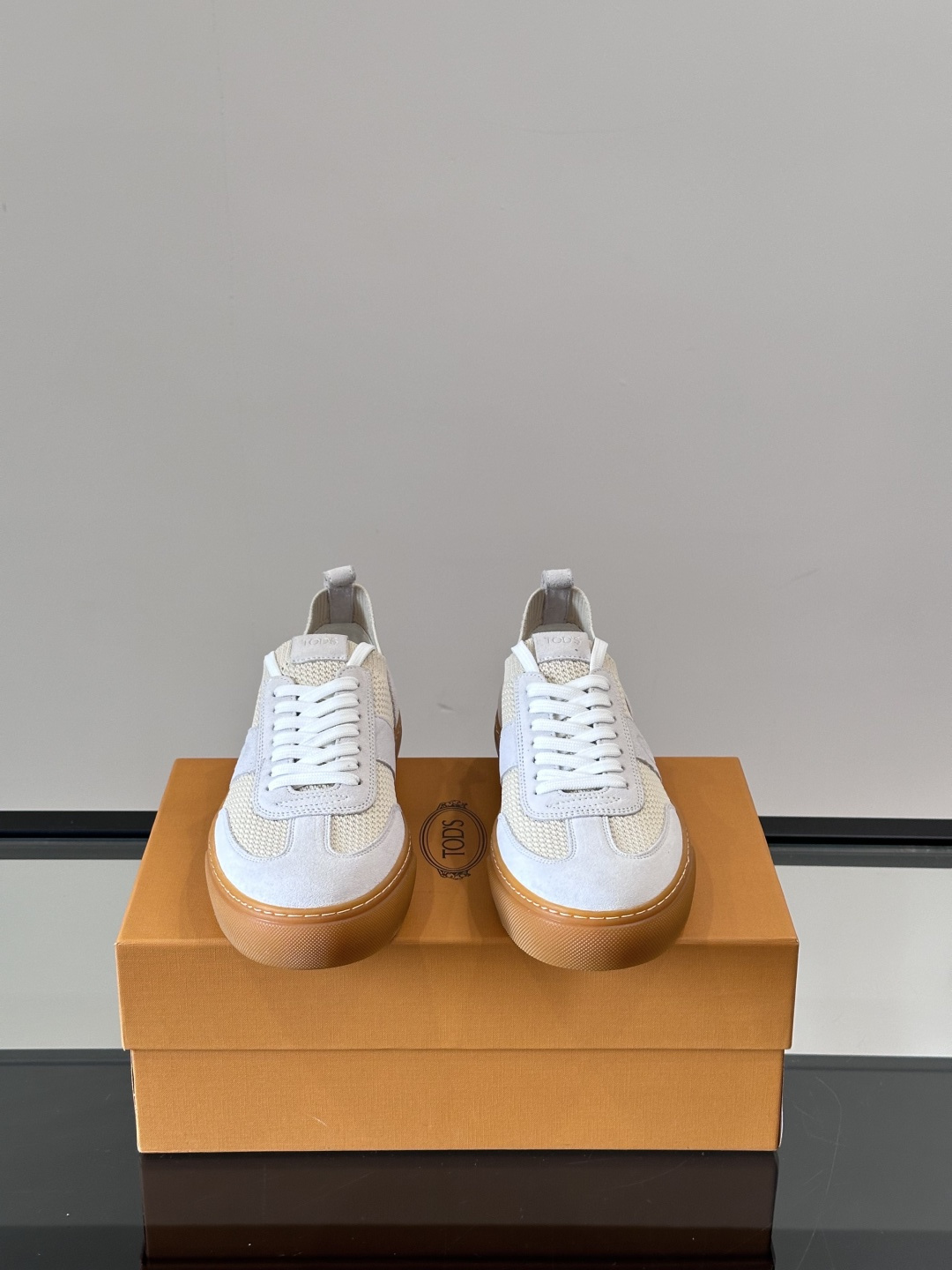 TOD'S/托德斯 新系列拼接网面运动鞋出货,莞产原材料猛货!这款运动鞋以绒面翻毛皮拼接透气织物网面制成,侧边点缀Tod's字母标识。后跟和鞋底设有凸起橡胶豆豆,橡胶豆豆尽显品牌元素,青春活泼,轻松提升日常造型。经典运动鞋版型,优雅低调,标配金标牛皮垫脚,橡胶豆豆防滑耐磨大底,上脚舒适有型,配原盒包装!