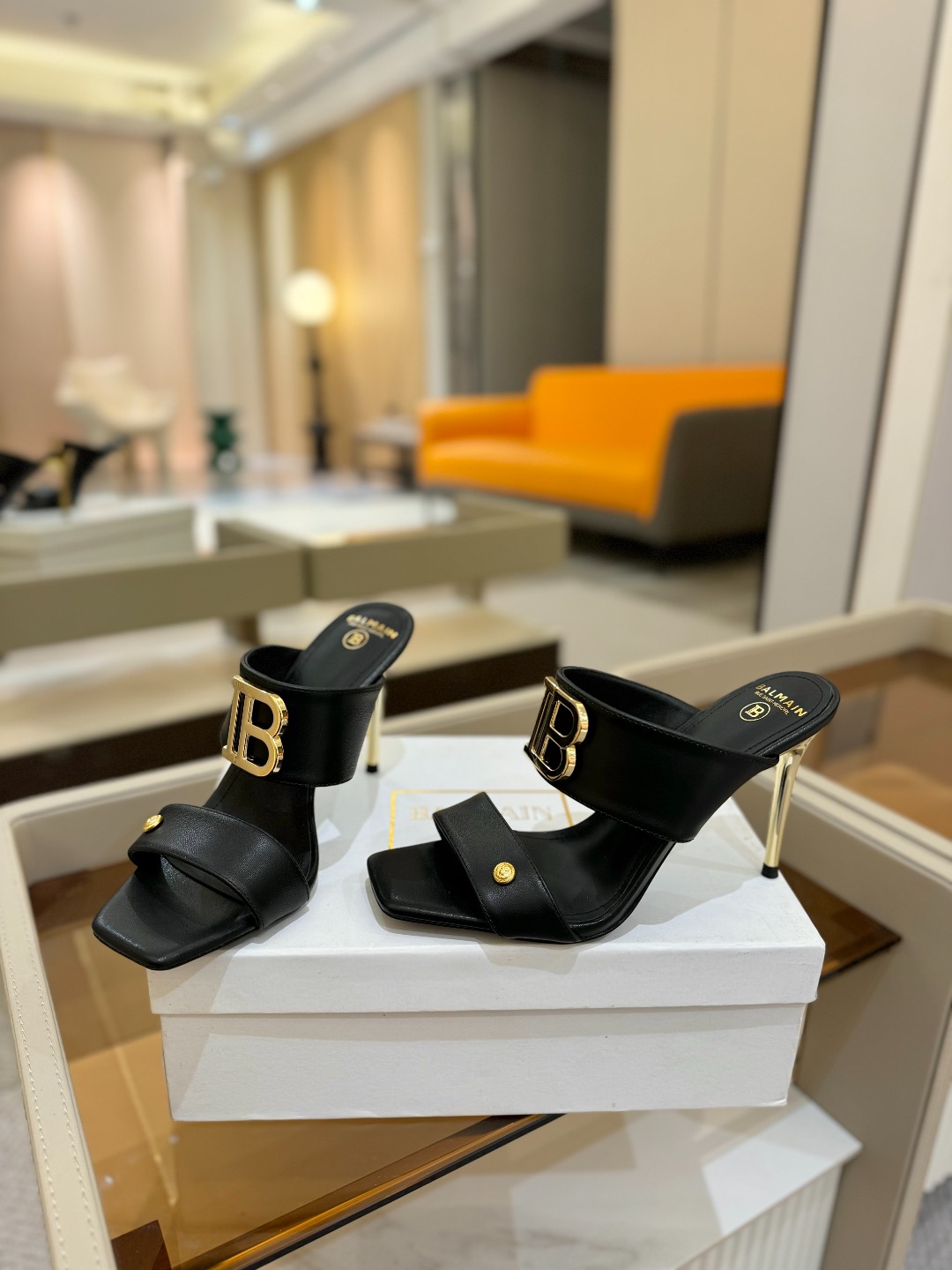 巴尔曼 2025 春夏款走秀金属扣高跟拖鞋