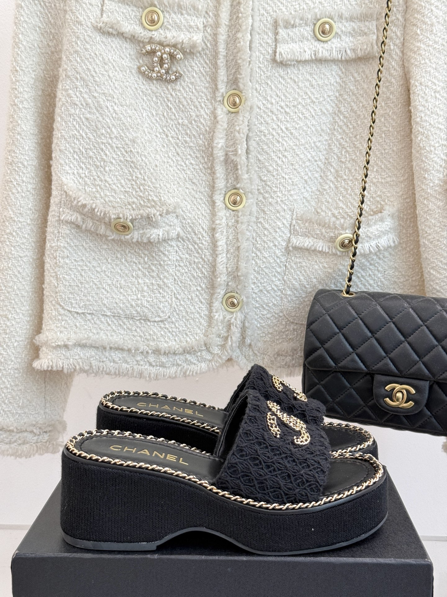 厚底链条双C拖鞋