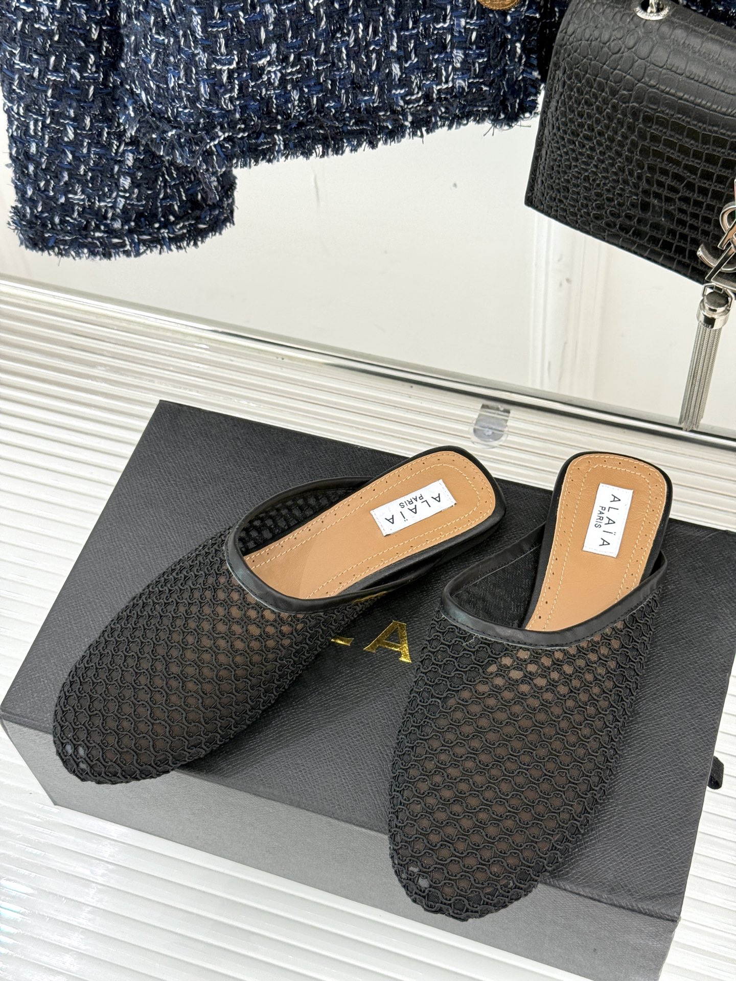 AlAIA|阿莱亚经典复古网面平底半拖鞋