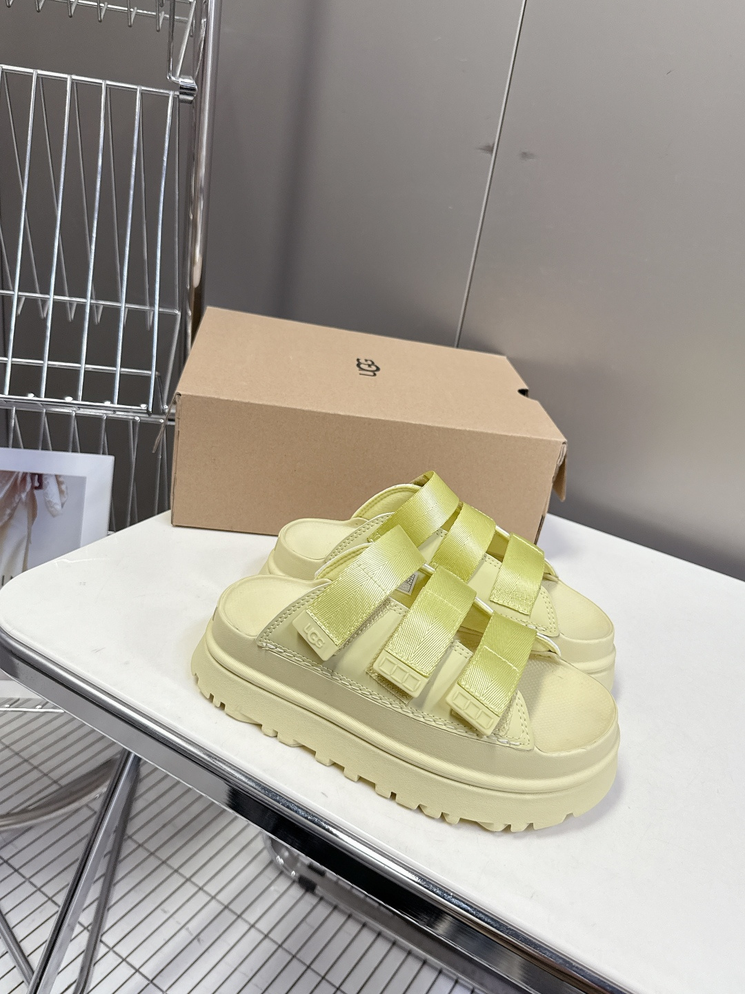 UGG春夏最新松糕厚底拖鞋 一款不会撞衫的鞋子、简约的隔板设计鞋面 魔术贴带子 春夏必备款、无论什么裤子裙子都能驾驭 上脚非常舒适好看鞋底超级轻 妥妥的增高神器大底高度4CM 原版开模发泡大底Size:35-40.