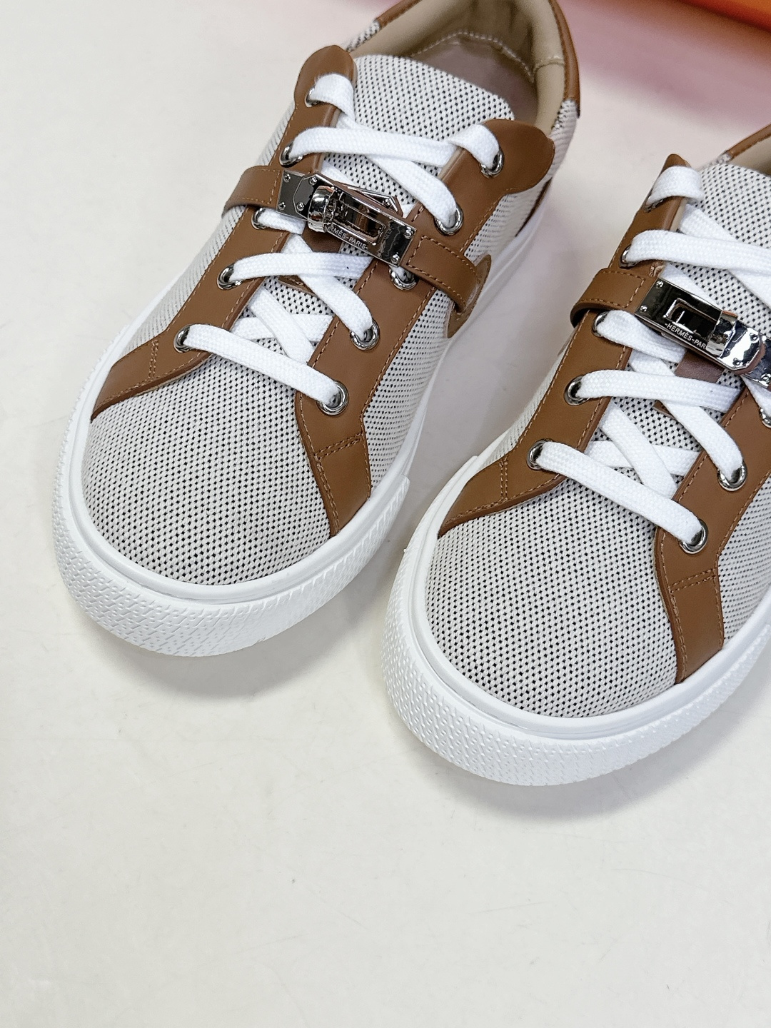 男装➕10 Hermes爱马仕Kelly扣经典休闲小白鞋情侣款 顶级版本