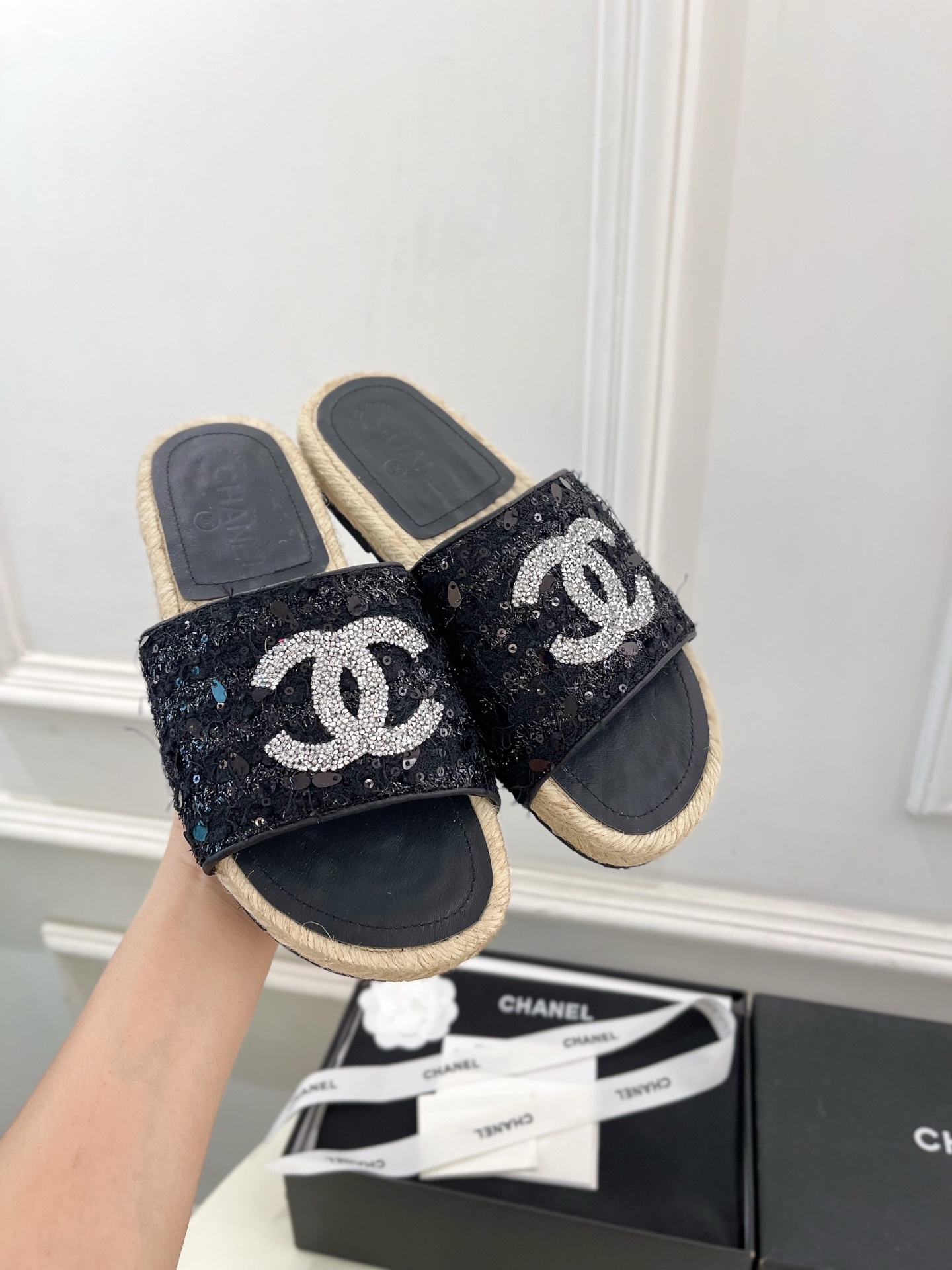🦋2025 春夏新品 专柜经典款 小香水钻双C草编渔夫拖鞋系列上新〰