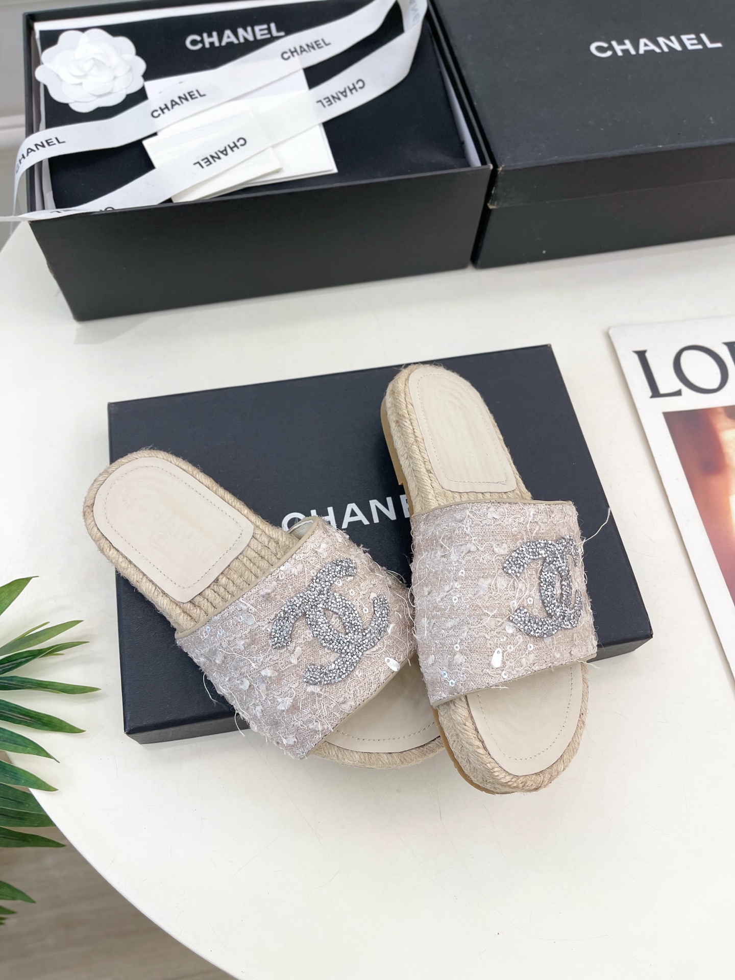 🦋2025 春夏新品 专柜经典款 小香水钻双C草编渔夫拖鞋系列上新〰