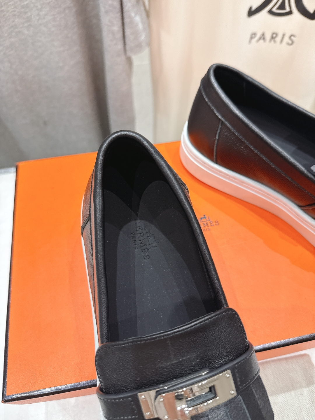 经典休闲风格+H家经典五金扣设计,经典耐看!原版倒模楦型,极致1:1形体,进口小牛皮呈现出精致质感!开模定制A级高密私模大底,奢华包装!