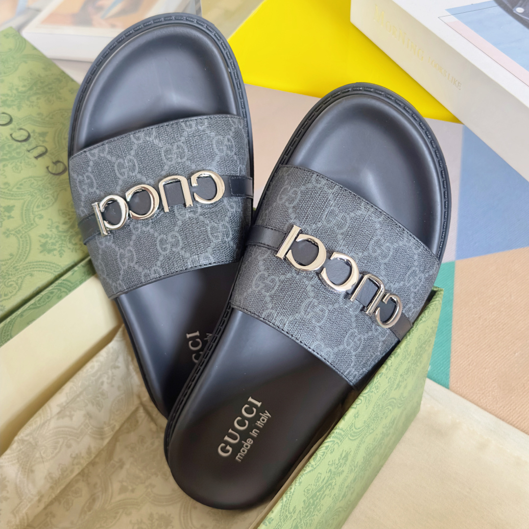 原版购入开发 做货 这款时尚感十足的凉拖匠心融蕴GG图案,将经典设计与现代风尚巧妙融合,尽显优雅精致格调。柔软的绒面材质鞋面凸显精致气息,贴合足部形状的鞋底则可带来全天舒适感受和百搭实用的穿着体验