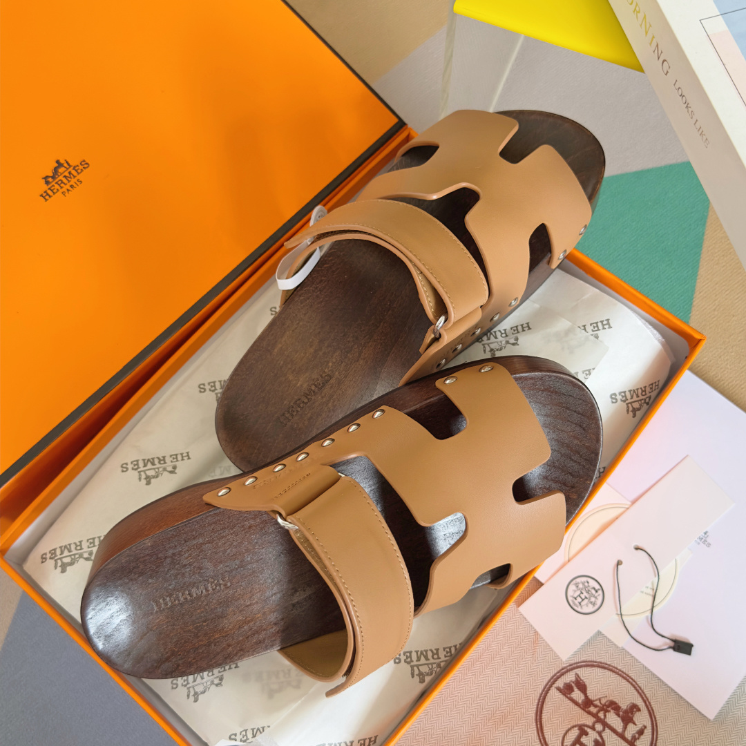 Hermes爱马仕 Kos系列 H拖 魔术贴 木底 凉鞋