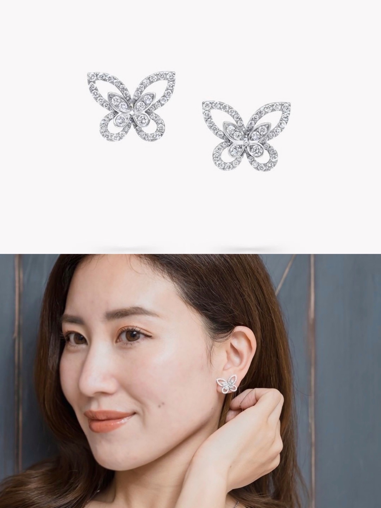 幻影蝴蝶耳钉,采用925银材质,高端仿真钻勾勒真挚的爱 💎优雅的蝴蝶幻影钻石项链描绘蝴蝶的优美轮廓,闪烁的密镶美钻勾勒出翅膀的线条。密镶美钻交织出中央的第二只蝴蝶🦋