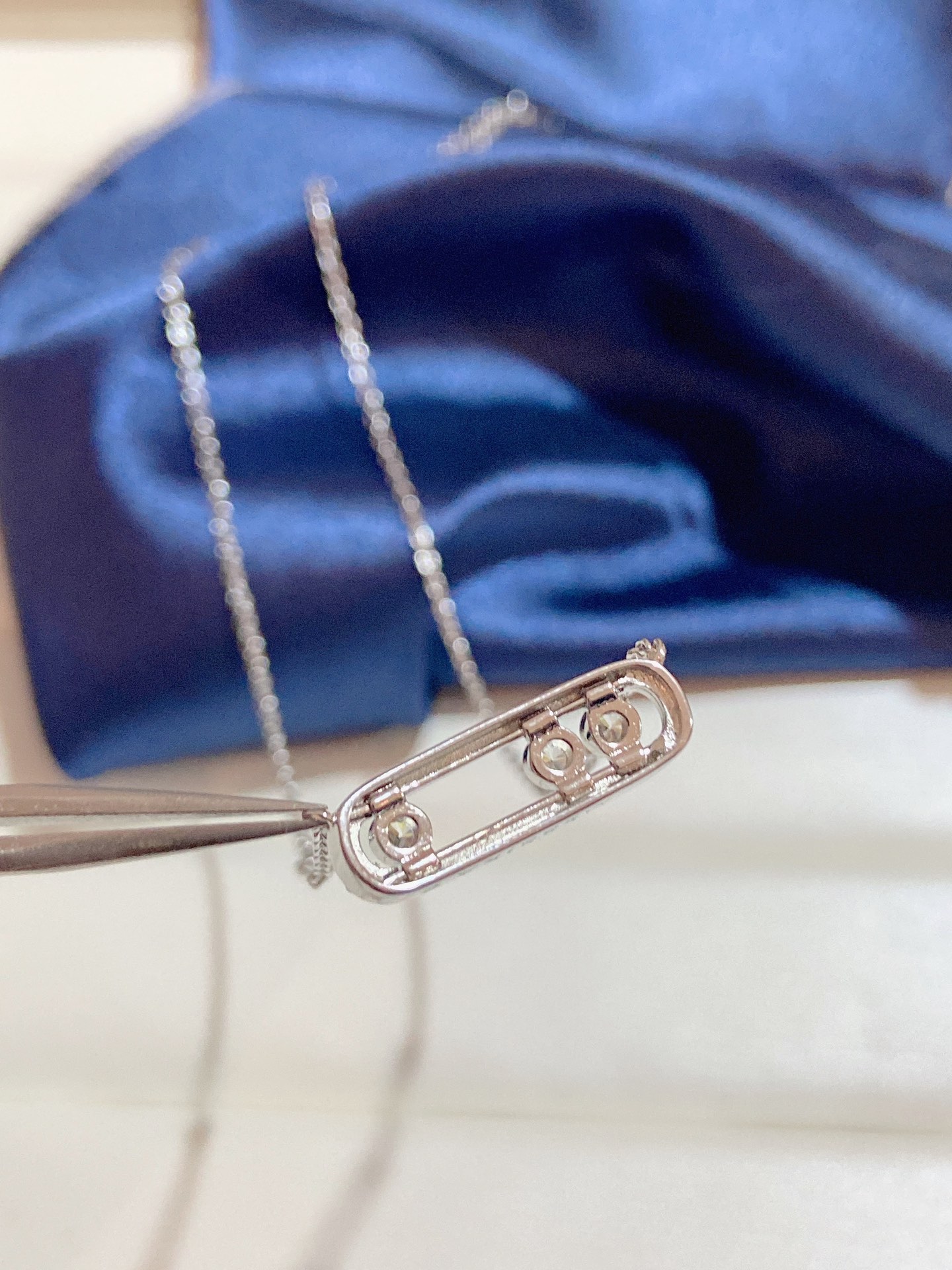 小众项链,梅西*卡项链也是一绝,会跟你的摇晃而摇晃的三颗钻,时不时的一眼就能看到那闪闪惹人爱的钻。 法国的品牌,国内知名度不是很广泛,但是在国外很受欢迎。她家的设计可以满足想追求一点新颖,但又不想太过夸张的亲,非常适合日常佩戴。 经典的MOVE系列,三颗可移动的钻是这个系列的标志设计,这三颗璀璨的钻石象征着过去,现在和未来的爱。 设计优雅精致,随着我们的动作,小钻也会跟着变换位置,非常的灵动,阳光下很闪耀。.