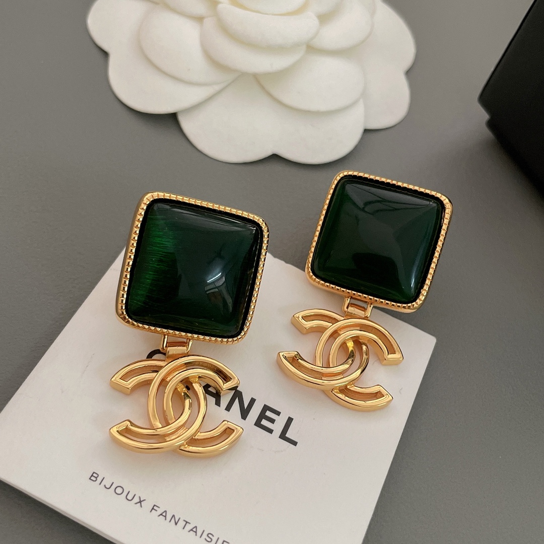 【【香绿水晶吊金双C耳钉】周公子同款,非常非常的美,浓郁的墨绿水晶搭金色双C,优雅又轻奢,Z 5500,有点迷人的Vint@ge复古格调,采用经典元素带点时尚感,颜色深邃迷人,超级的正点,一万个推荐!.