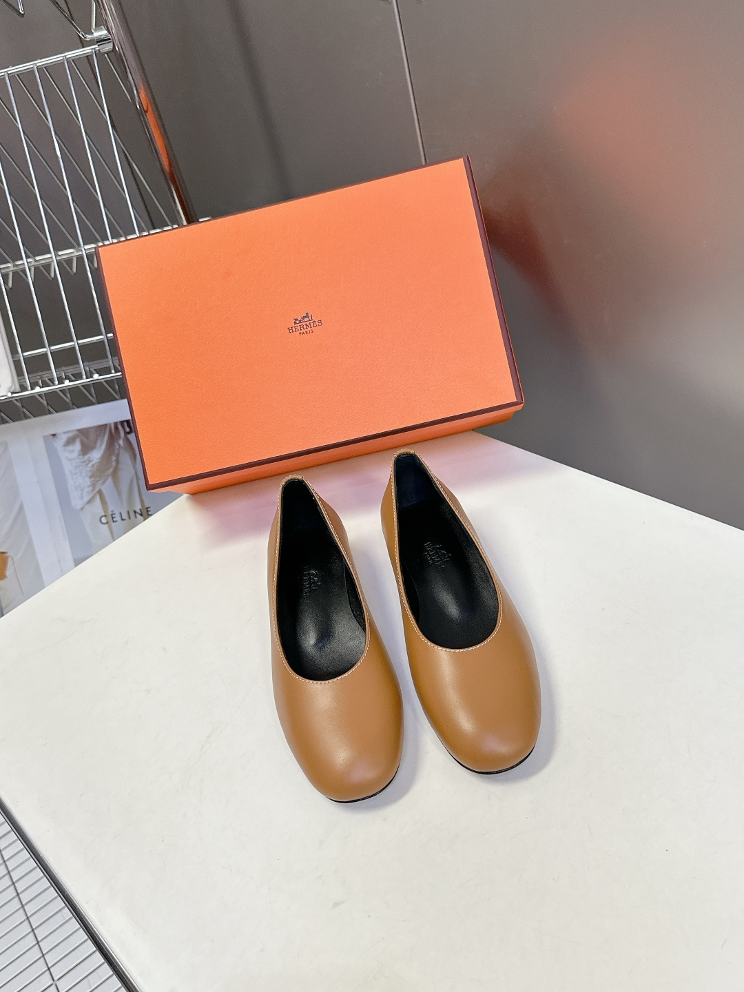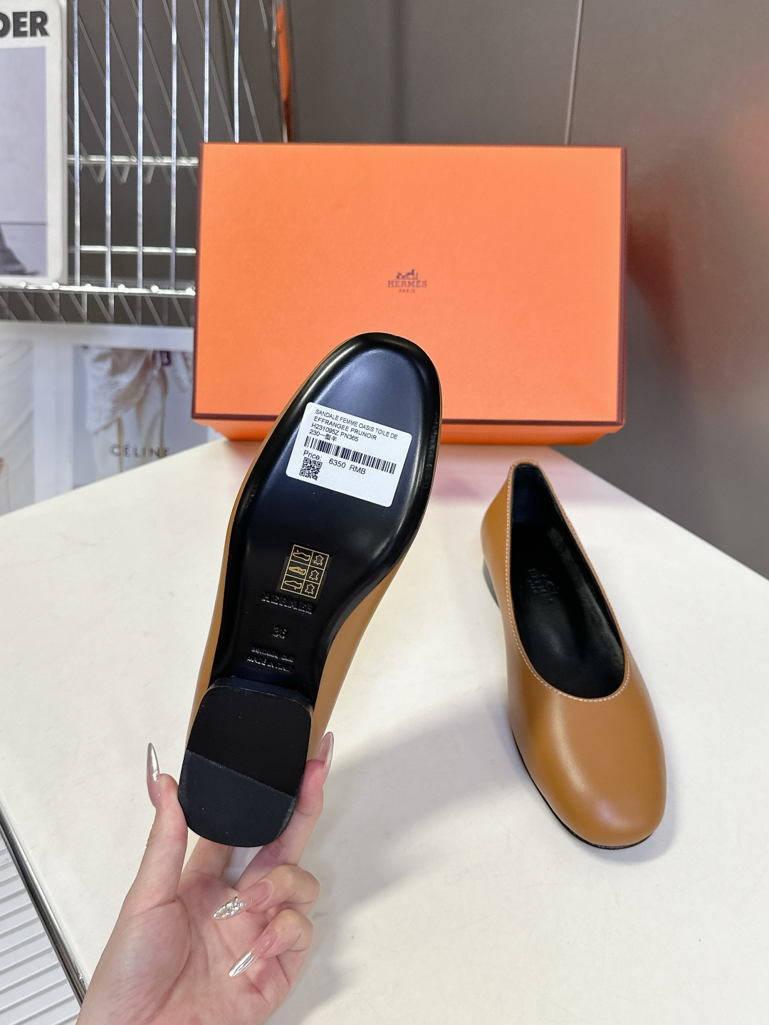 Hermes爱马仕春夏最新单鞋 柜柜超难配货 经典的圆头版型 简约大气的设计 没有任何复杂的装饰 妥妥的老钱风 上脚超级百搭好看时髦 超多明星网红种草 春夏必备 随意舒适高级感 上脚超级舒适不勒脚 鞋面进口小牛皮 混种羊皮里 跟高2.5CM意大利真皮大底 原版全套包装 Size:35-41(40 41定做不退换).
