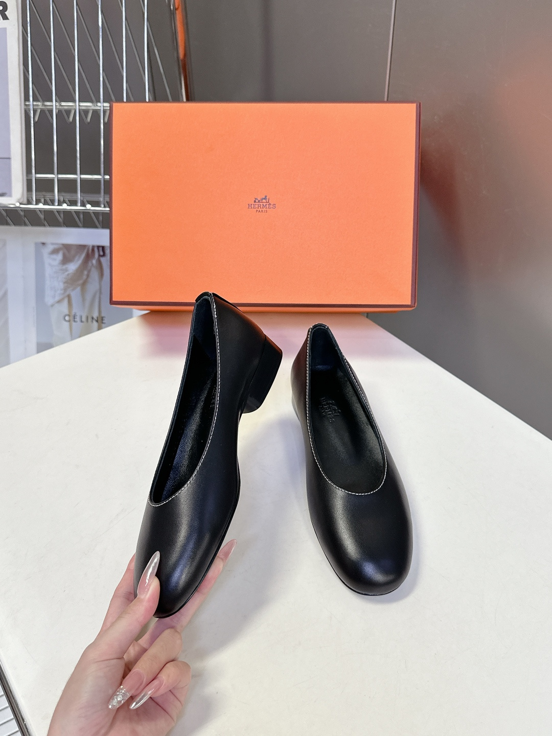 Hermes爱马仕春夏最新单鞋 柜柜超难配货 经典的圆头版型 简约大气的设计 没有任何复杂的装饰 妥妥的老钱风 上脚超级百搭好看时髦 超多明星网红种草 春夏必备 随意舒适高级感 上脚超级舒适不勒脚 鞋面进口小牛皮 混种羊皮里 跟高2.5CM意大利真皮大底 原版全套包装 Size:35-41(40 41定做不退换).