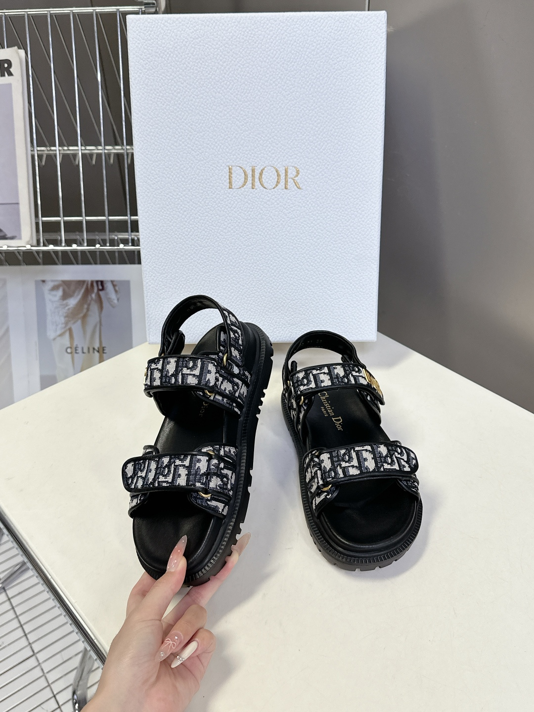 Dior迪奥春夏最新款魔术贴凉鞋、超多明星网红种草、经典的版型设计➕上迪奥LOGO五金点缀、超好看超百搭、上脚非常柔软✔️鞋面进口电绣,内里羊皮里、正品开模TPU大底 Size:35-41.