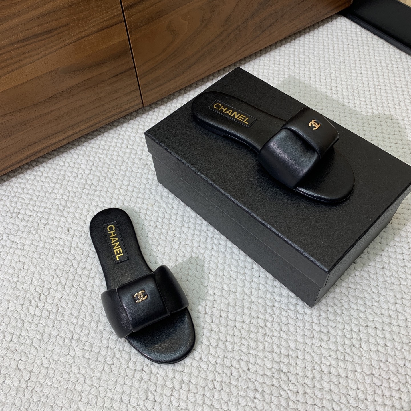 🔸Chan*l🔸平底面包拖鞋。浓浓的中古典雅气息。鞋面定制进口小羊皮,真皮大底。