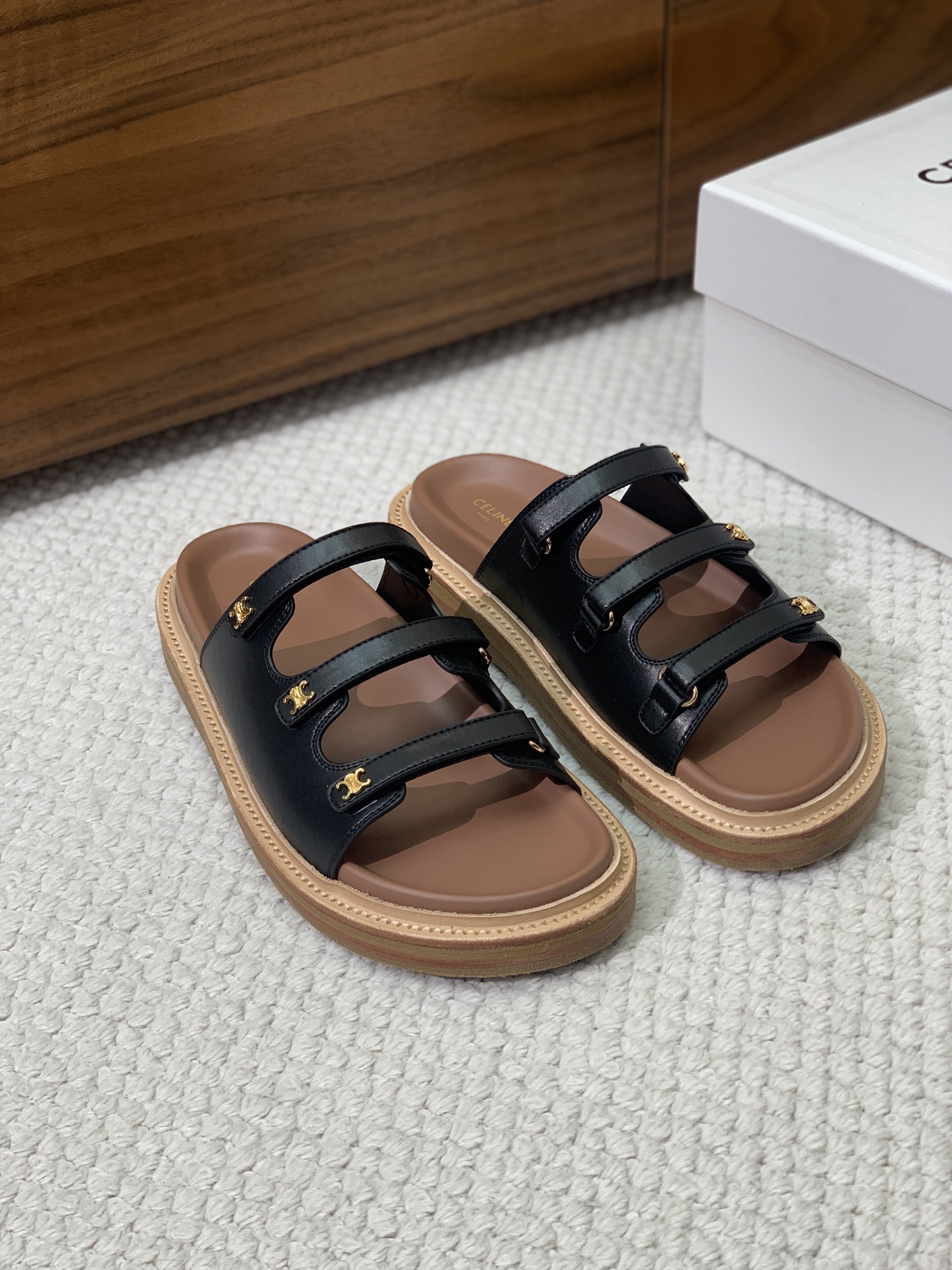 🔸CELI*E🔸春夏英伦风平底微标拖鞋。简约大气。耐看不过时,复古的英伦风格,让你穿出不一样的气质。面料头层牛皮,原版开模大底。真皮沿条。 码数:35-42(40、41、42订做不退换) .