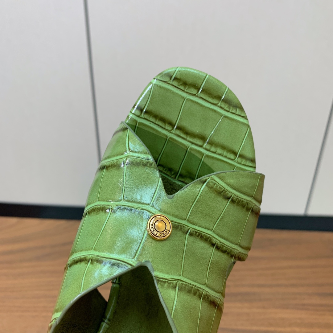 【Loro Piana】经典复古绝美坡跟拖鞋。简约即时髦、松弛的高级感。感受夏日感高级穿搭。面料采用压纹牛皮。进口真皮大底,跟高8.5cm