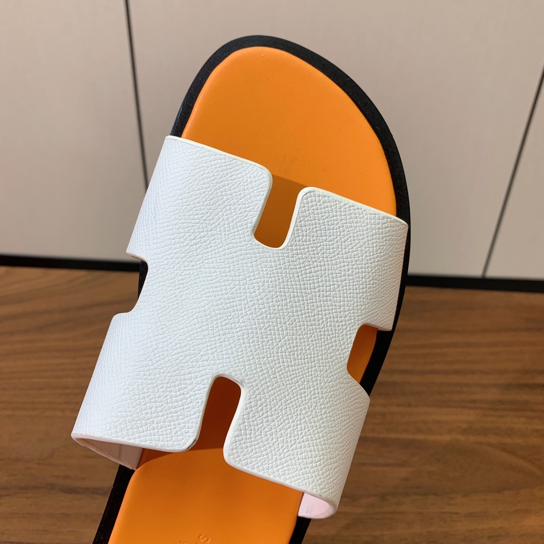 【Herm*s】情侣款H拖系列。经典简约时尚百搭,以“H”标志性图案鞋面为灵感打造休闲造型。鞋面定制进口头层牛皮面料/特种皮面/工艺面料。原版意大利进口真皮大底。