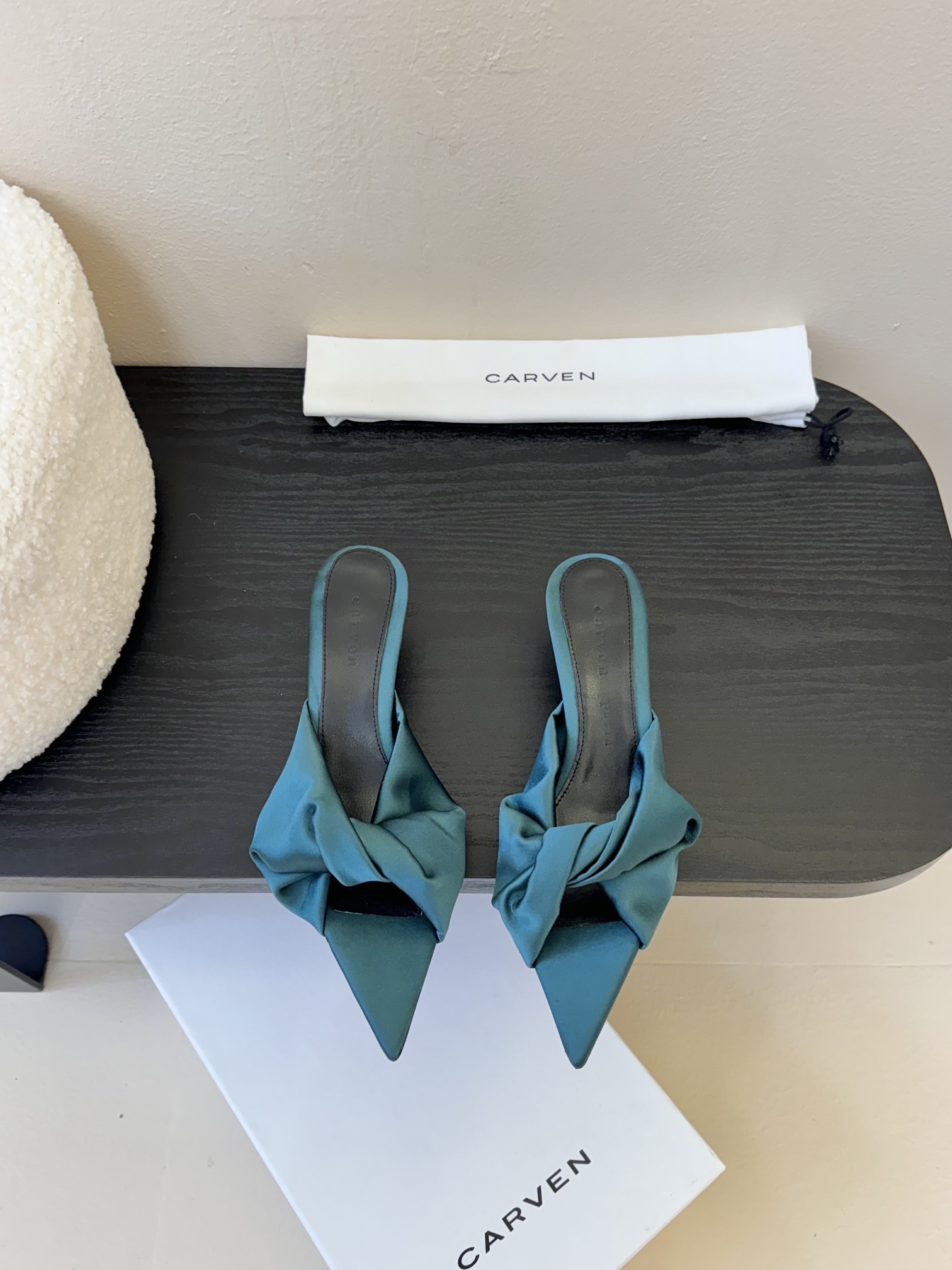 CARVEN25春夏新款简易复古真丝绸缎麻花尖头猫跟拖鞋凉鞋