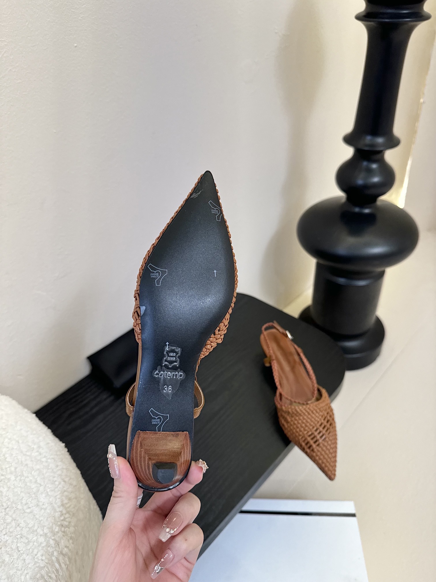 以精巧编织工艺塑造独特鞋面 尖头设计增添锐利摩登感 编织绑带环绕脚踝 勾勒纤细线条 将复古韵味与现代时尚精妙融合 尽显别致风情 是提升造型格调的绝佳之选