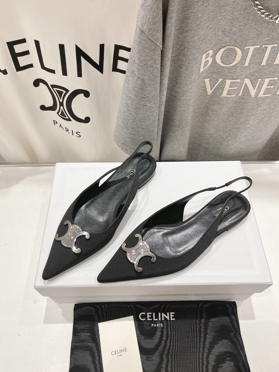 「CELINE」赛琳25ss·早春最美⚜️黑银尖头平底鞋小凉鞋~