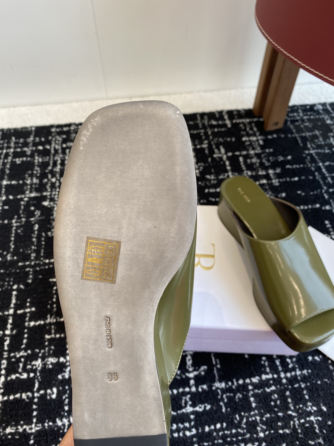 代购级 The row 25ss 春夏季新款 方头 鱼嘴拖 性冷淡风格最优选的颜色,化繁为简的美,春夏最值得入手的简约单品 自带高级气场的拖鞋,非常适中的厚底高度,也非常容易驾驭,非常舒适好穿,是可以单穿出去搭配衣服的拖鞋 日常度假都是必不可少,随便搭配一下都可以自带气场出现顶级制造! 鞋面:进口绵羊皮/进口开边珠 垫脚:山羊皮 鞋底:原版开模水台/真皮大底 跟高:2.5cm/5.5cm Size:35-41(40 41订做不退换).