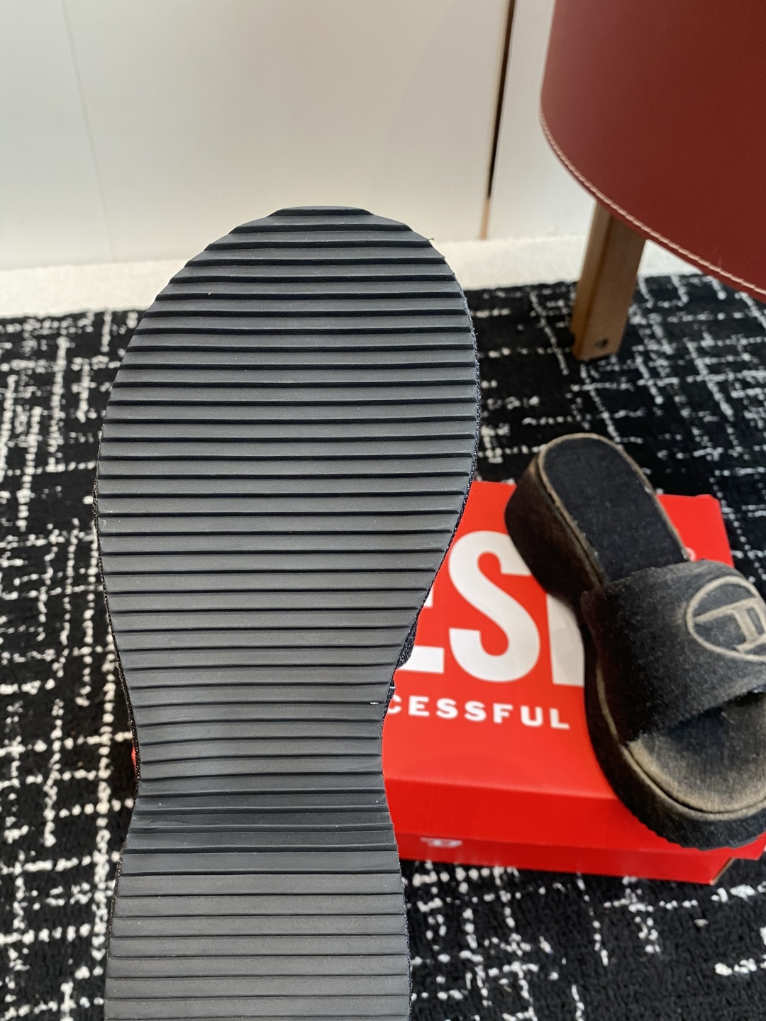 DIESEL 25ss 春夏最新款水洗牛仔布厚底 拖鞋
