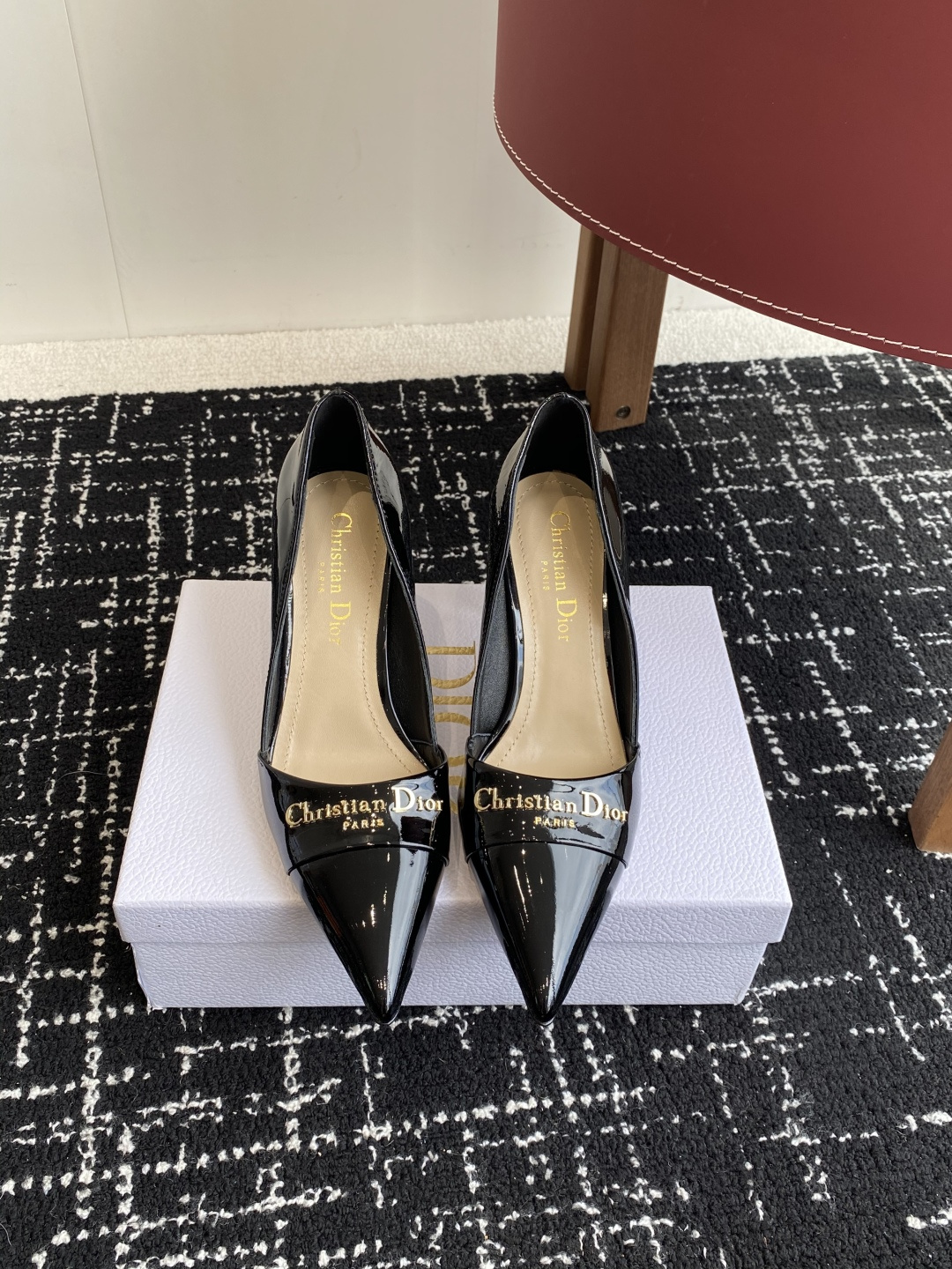 这款 My Dior 露跟高跟鞋是2025春夏成衣系列新品,精致优雅。采用玫瑰粉色漆皮牛皮革精心制作,尖头设计,点缀以金色饰面金属