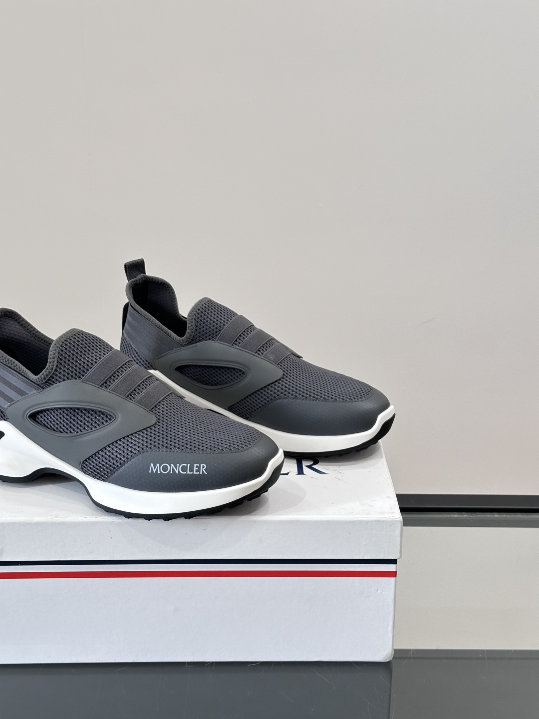 Moncler/蒙口男士休闲运动鞋,具有舒适防滑性能,采用一体成型进口飞织科技面料制成,兼备创新、功能性与图形细节于一体,诠释潮流时尚。大底高弹橡胶发泡组合成型,具有高弹性高耐磨性,提高舒适性!