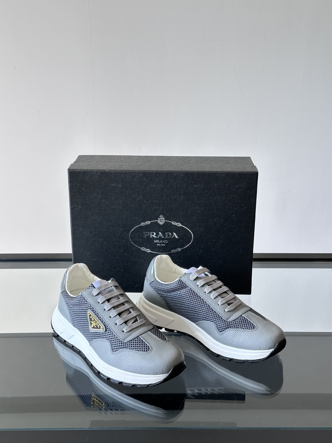 ◾️▫️Prad*拉达2025新品男士时尚运动鞋,进口小牛皮拼接网面材料,内里头层小牛皮搭配小牛鞋垫,鞋身侧经典logo装饰,原版橡胶大底,防滑耐磨,舒适度极高的经典款!