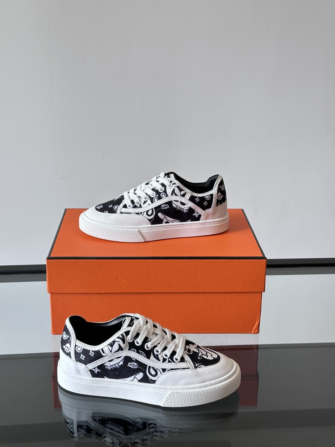 𝐇𝐄𝐑𝐌𝐄𝐒 𝐃𝐞𝐞𝐩爱马仕情侣款👫小白鞋休闲滑板鞋 时尚的图形设计 打造复古风格🐎都市造型 简约百搭 特定帆布材质 羊皮里 原版开模tPu大底✅