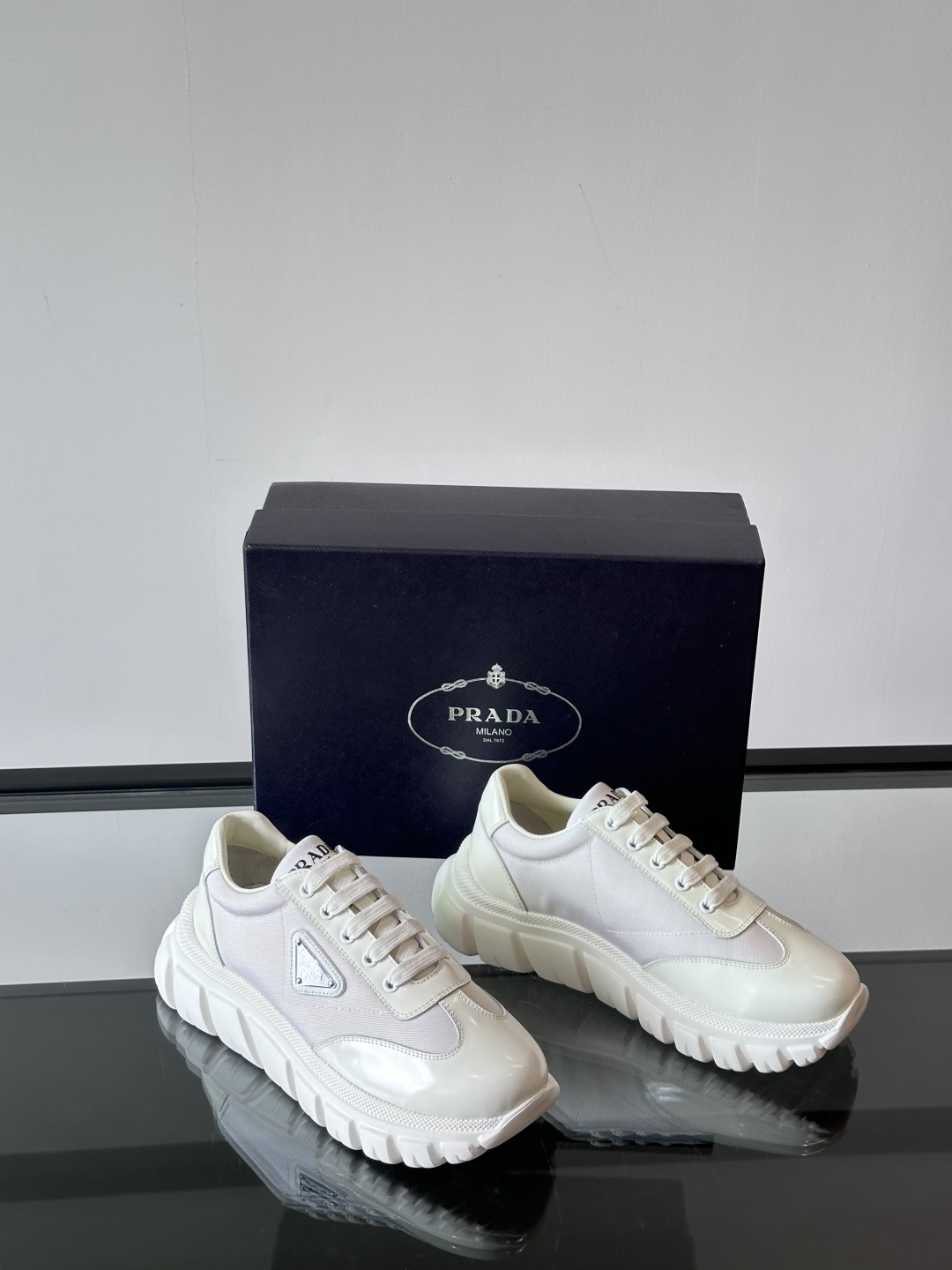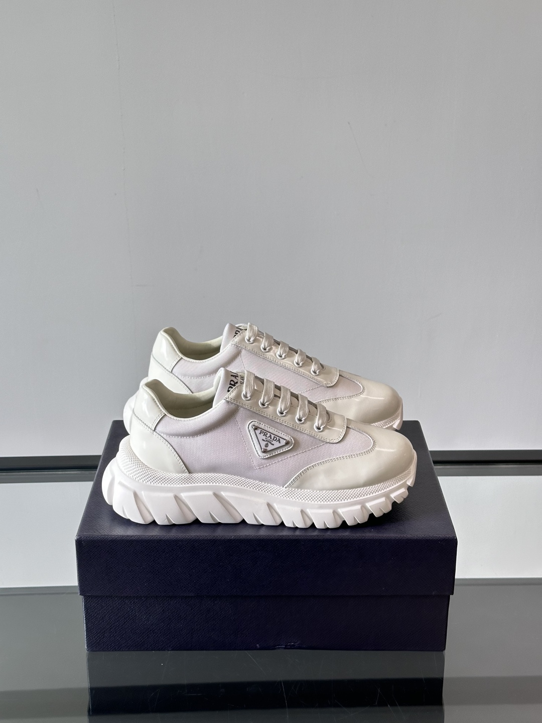 Prad*男士新款柔软皮革休闲运动鞋,这款运动鞋采用纳帕牛皮➕网面打造,皮质柔软细腻,纹理自然,提升透气性能,外侧橡胶三角形徽标点缀鞋身,鞋舌及后跟饰以品牌字母logo细节,超轻质6cm凹凸纹橡胶厚底,侧面配有PRADA字母徽标,牛皮内里,脚感舒适,精致百搭! ,Size:38-44(45.46定做).