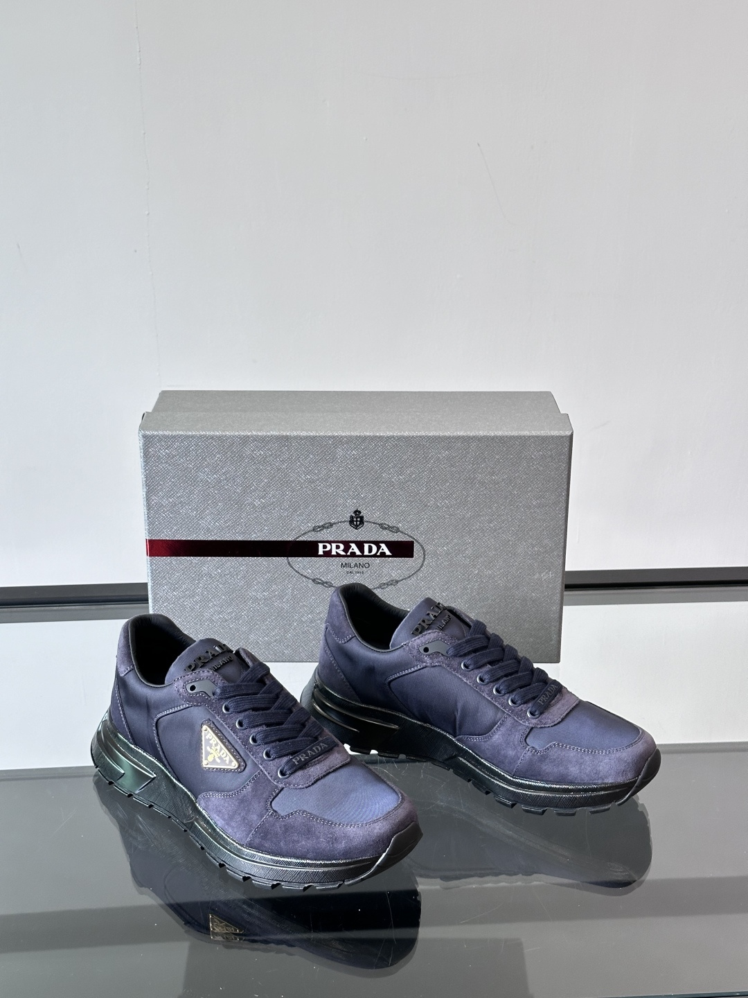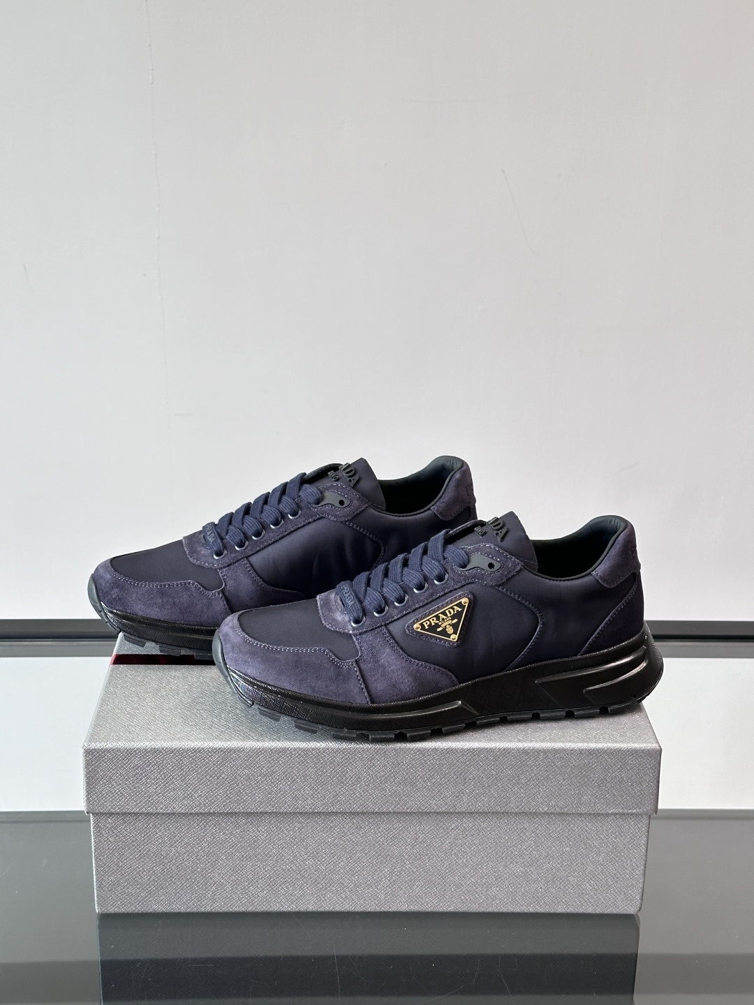 Prad*普拉达春夏新品男士高端运动鞋,这款运动鞋时尚百搭,简洁现代,融合运动风格和精致细节。选用进口牛皮材料拼接科技布打造,搭配橡胶鞋底,鞋舌压印字母徽标,简约时尚单品。