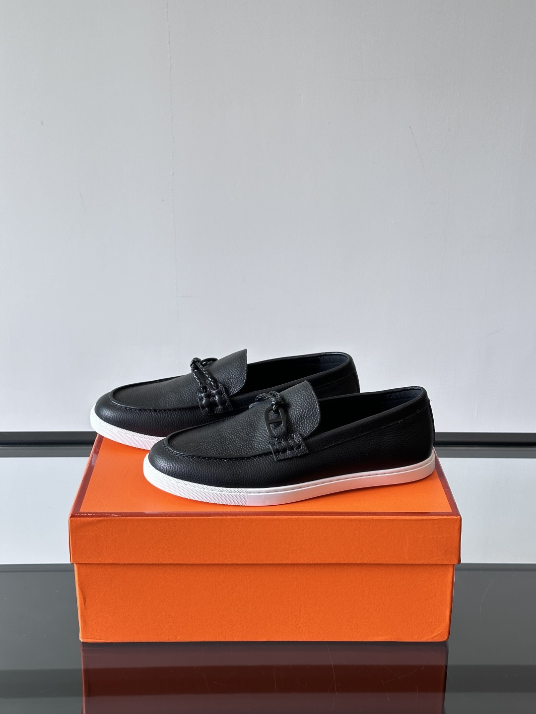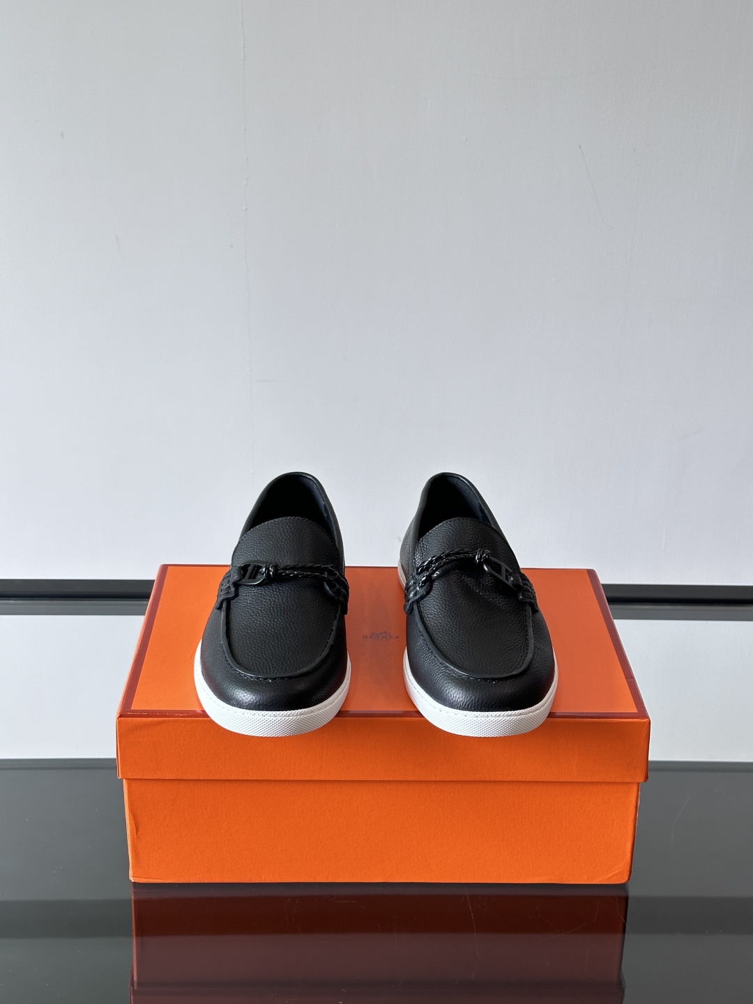 𝐇𝐄𝐑𝐌𝐄𝐒 Ignacio乐福鞋小牛皮乐福鞋,饰有皮革编绳和“Chaine d'Ancre”鞋扣。时尚航海风格乐福鞋,是陆地和海滨的理想选择。鞋底高度:1.5厘米白色橡胶鞋底。 镀钯鞋扣黑色小牛皮内底和内衬。 ,size:38-44(45定制).