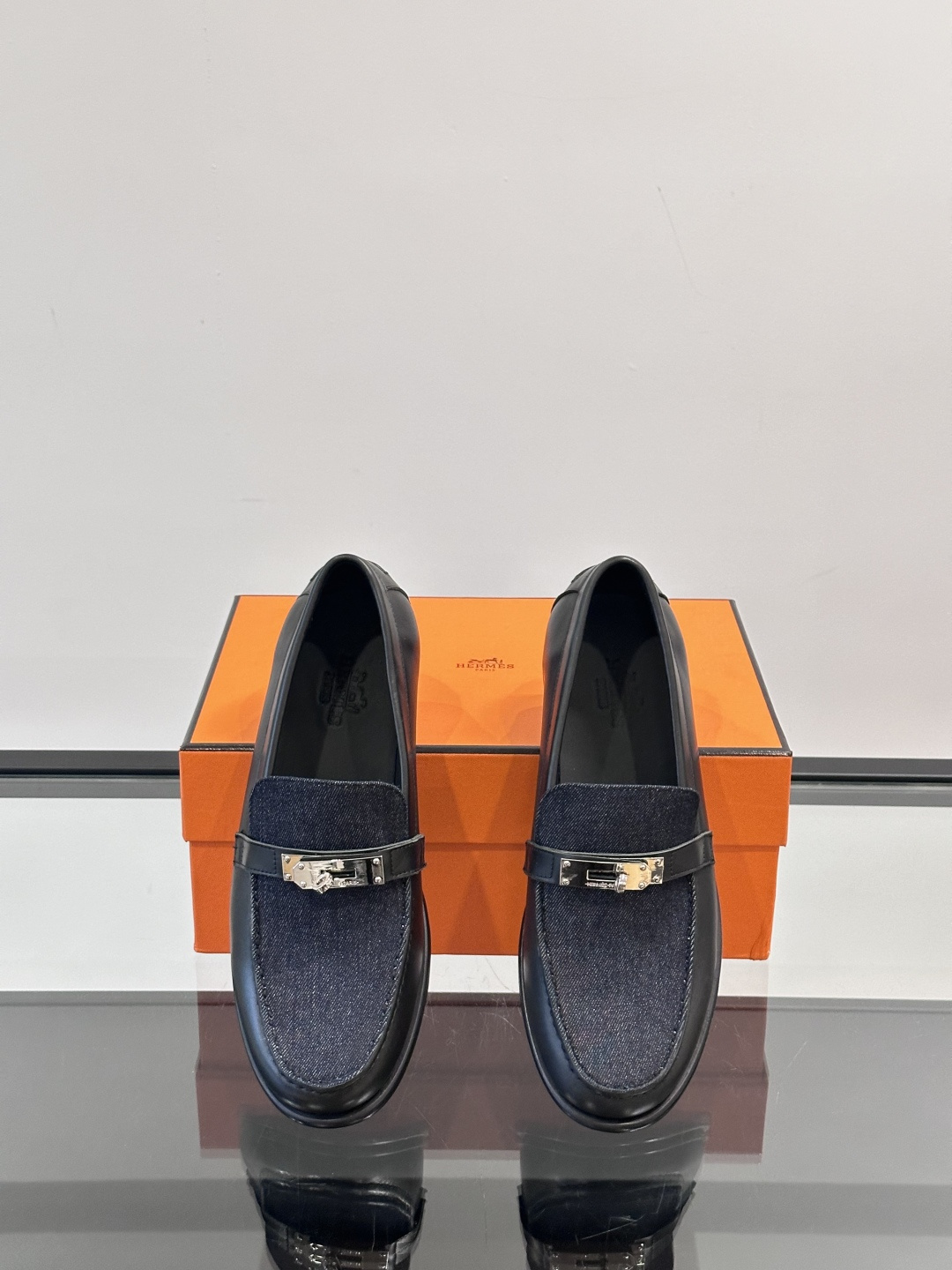 H家Destin乐福鞋。小牛皮搭配牛仔面料乐福鞋,搭配内缝线鞋底和经典Kelly鞋扣。打造时尚造型。