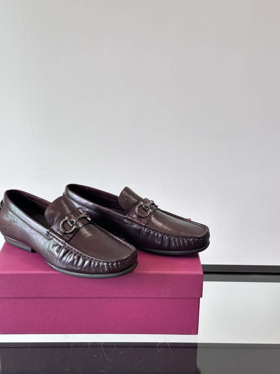 Ferragam/菲拉格慕 男士皮革手工休闲皮鞋,莞产猛货!水洗真皮夹层中底搭配橡胶外底皮鞋,款式新颖时尚,繁复鞋面里外采用进口马皮和做旧处理翻毛皮革制成,皮质柔软细腻、光泽透亮,耐磨不变形,精致手工缝线,整只鞋水洗处理,做工精良,彰显极致纯手工工艺,搭配牛皮压纹徽标垫脚,上脚柔软舒适透气!