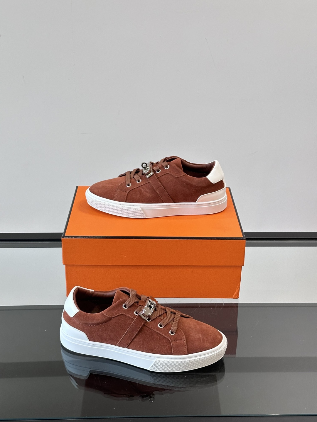 H 爱马仕高端奢品,男士低帮休闲运动鞋,采用进口绒面牛皮打造,搭配原版五金配件。精品级别,打造现代都会风格!进口小牛皮内里,柔软舒适 ,TPU大底轻便舒适,精品级别! 元。Size:38-44(45定做).