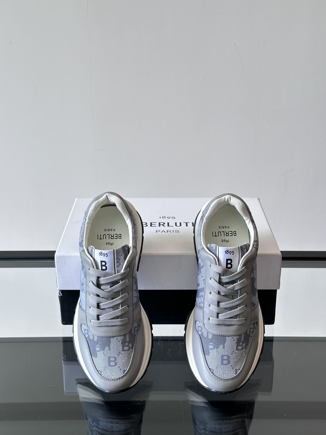 Berluti/布鲁提 低帮休闲运动鞋,这款百搭的低帮运动鞋鞋面采用进口牛皮拼接科技布打造。外侧饰有scritto图纹,后跟真皮包裹,内里垫脚进口小牛皮,舒适度超级赞,同材质拼接鞋舌带“1895 B PARIS"压纹徽标,配打蜡鞋带,品牌logo橡胶大底,时髦又舒适!
