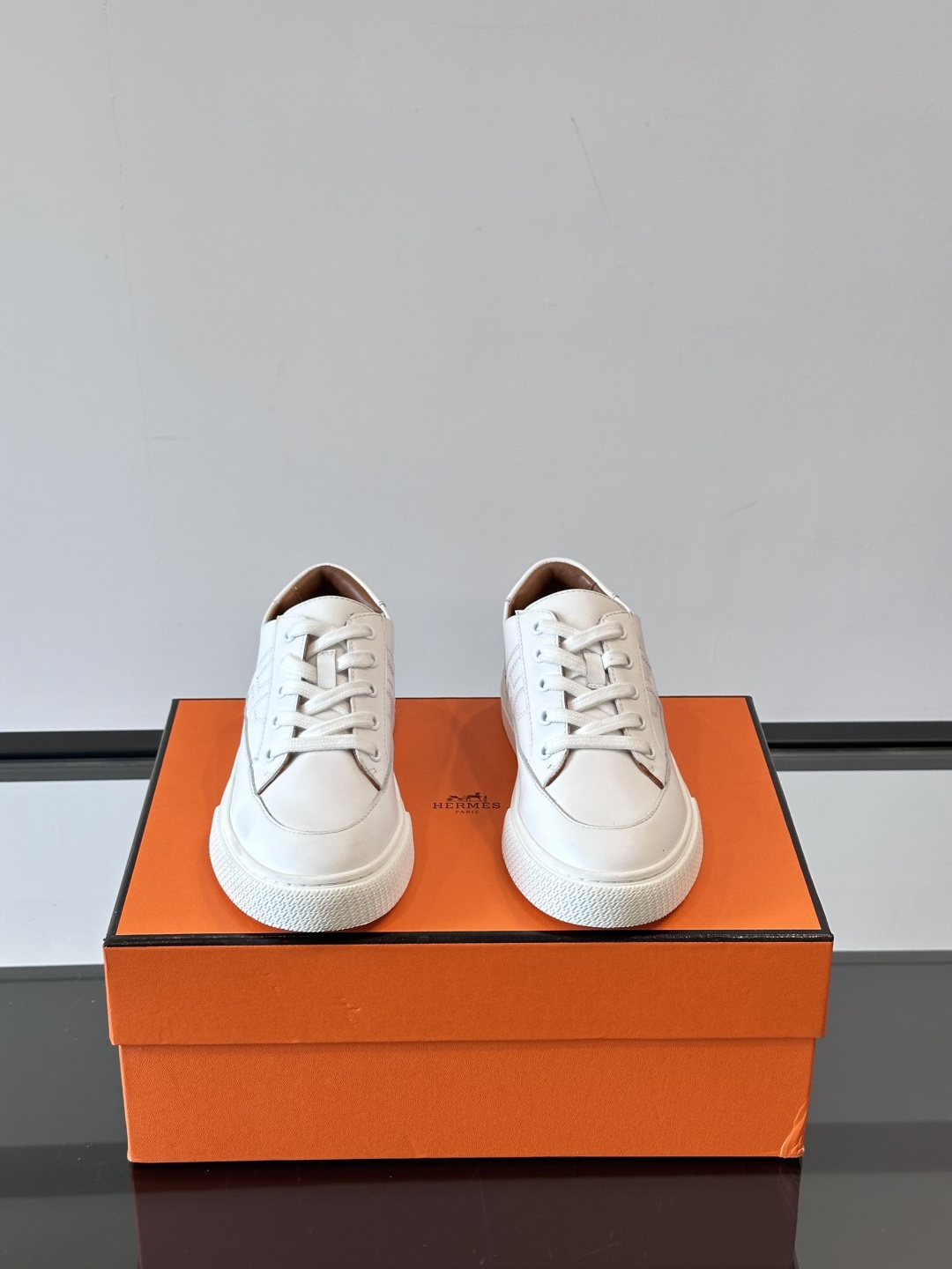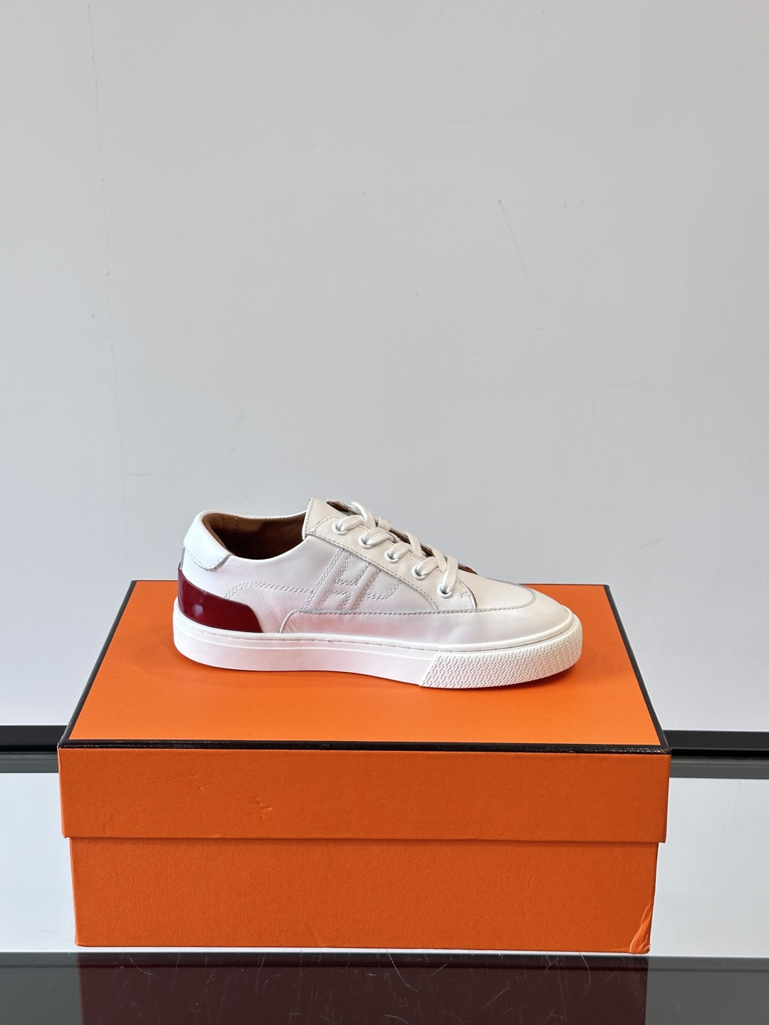𝐇𝐄𝐑𝐌𝐄𝐒 爱马仕经典情侣款👫休闲小白鞋滑板鞋 完全不会撞鞋 充满未知的爱马仕 很少出平底休闲鞋而且是搭配经典的款式!让人一眼就爱上 超百搭~裙子裤子都可以随意配🉑️闭眼入 超显高贵。特定牛皮/帆布材质 羊皮里 原版开模tPu大底 。size:35-45(45定制).