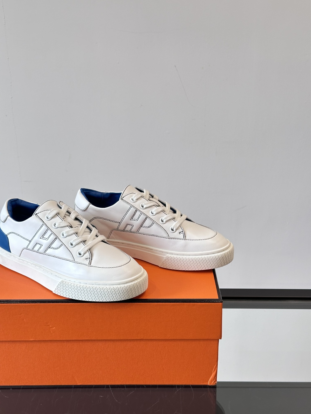 𝐇𝐄𝐑𝐌𝐄𝐒 爱马仕经典情侣款👫休闲小白鞋滑板鞋 完全不会撞鞋 充满未知的爱马仕 很少出平底休闲鞋而且是搭配经典的款式!让人一眼就爱上 超百搭~裙子裤子都可以随意配🉑️闭眼入 超显高贵。特定牛皮/帆布材质 羊皮里 原版开模tPu大底 。size:35-45(45定制).