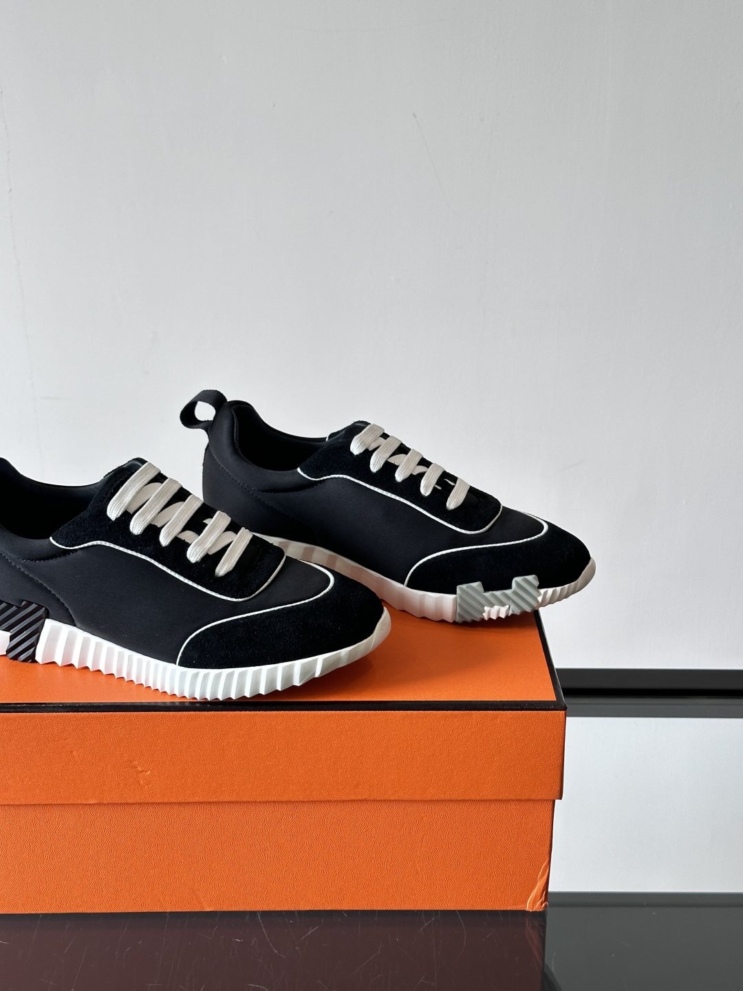 𝐇𝐞𝐫𝐦𝐞𝐬 𝐁𝐨𝐮𝐧𝐜𝐢𝐧𝐠爱马仕情侣款👫休闲鞋 特定弹力布麂皮山羊皮运动鞋 轻盈鞋底装饰撞色图案,打造百搭时尚风格 原版开模大底♥️。