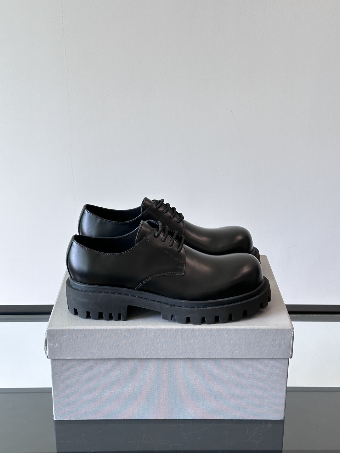 Balenciaga新款锯齿厚底圆头德比鞋 经典鞋头造型,鞋头微翘,造型感十足鞋面则是采用头层牛皮,质感清晰可见,鞋底5cm防滑橡胶底,