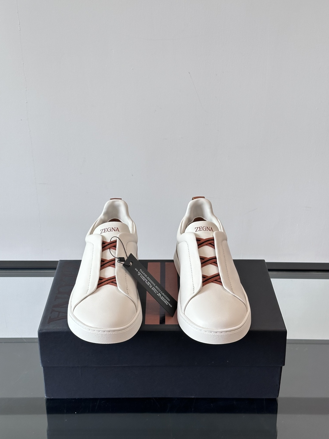 ZEGNA/杰尼亚 新款男士低帮皮革运动鞋,选用进口牛皮打造,丰富的工艺细节,鞋底骆马皮革嵌饰和品牌压纹徽标细节,干净简洁的设计线条非常百搭,优雅大气,动感十足,防滑耐磨又耐用的橡胶大底,鞋底和鞋面手工缝线缝合,耐穿不掉底,非常不错的男士休闲运动鞋潮流单品!