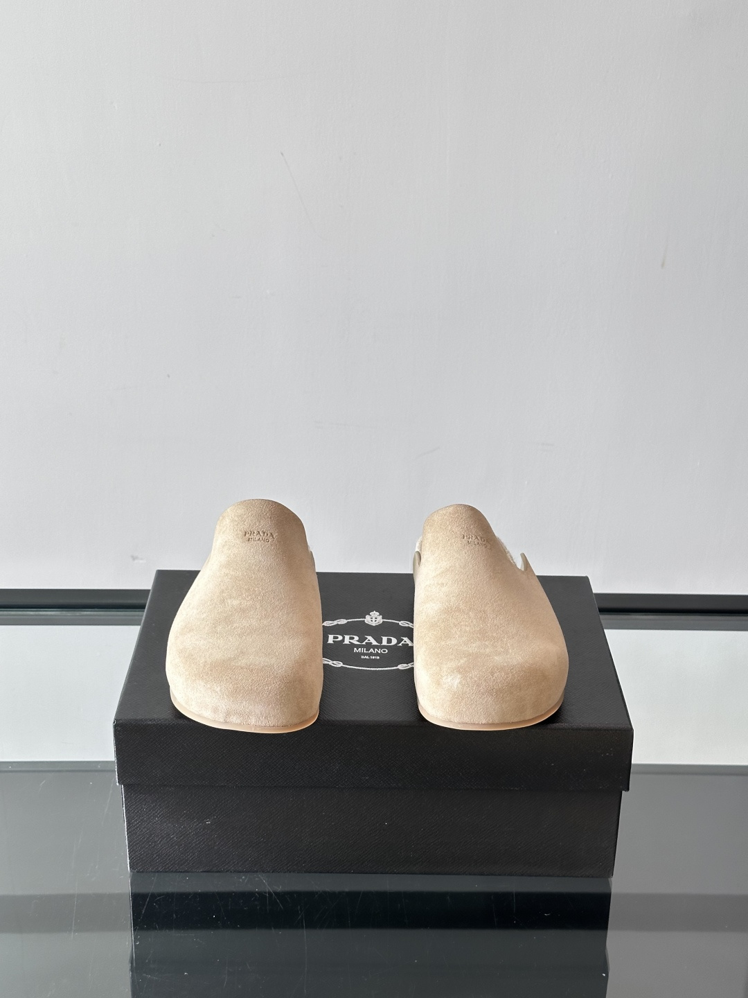 Pra普拉真皮男士半拖凉鞋🩴这款时尚休闲的穆勒鞋、精选植绒牛皮,巧妙融合精致质感,皮革衬里 鞋面饰有PraMilano字母徽标,10毫米轻质橡胶鞋底,绳编内底+搭配皮革跟片,上脚舒适休闲‼️‼️