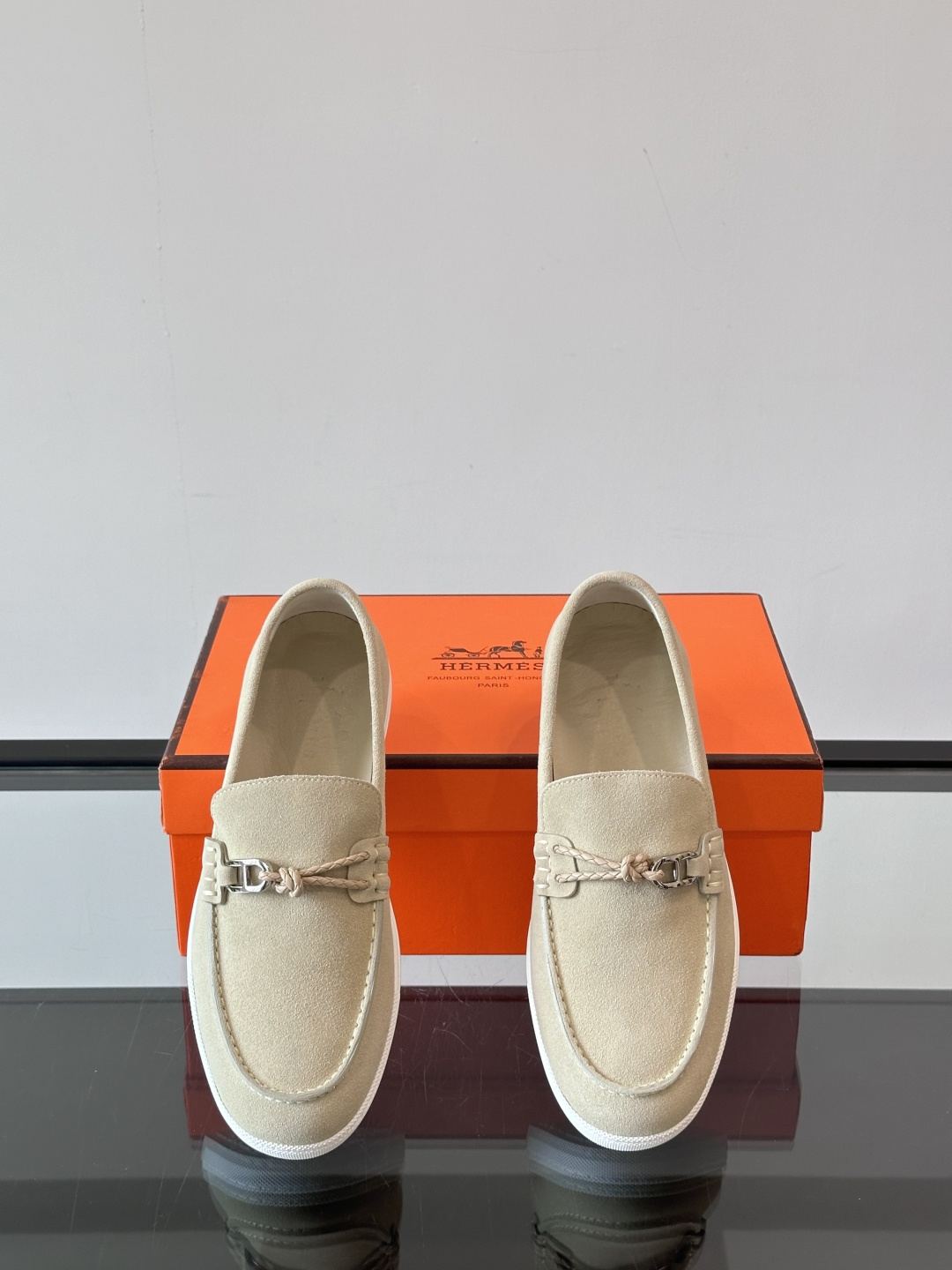 H爱马仕Ignacio乐福鞋👞。麂皮小牛皮乐福鞋,饰有皮革编绳和镀钯“Chaine d'Ancre”鞋扣。 航海风格乐福鞋,是陆地和海滨的理想选择。 ,size:39-44(38.45定制).