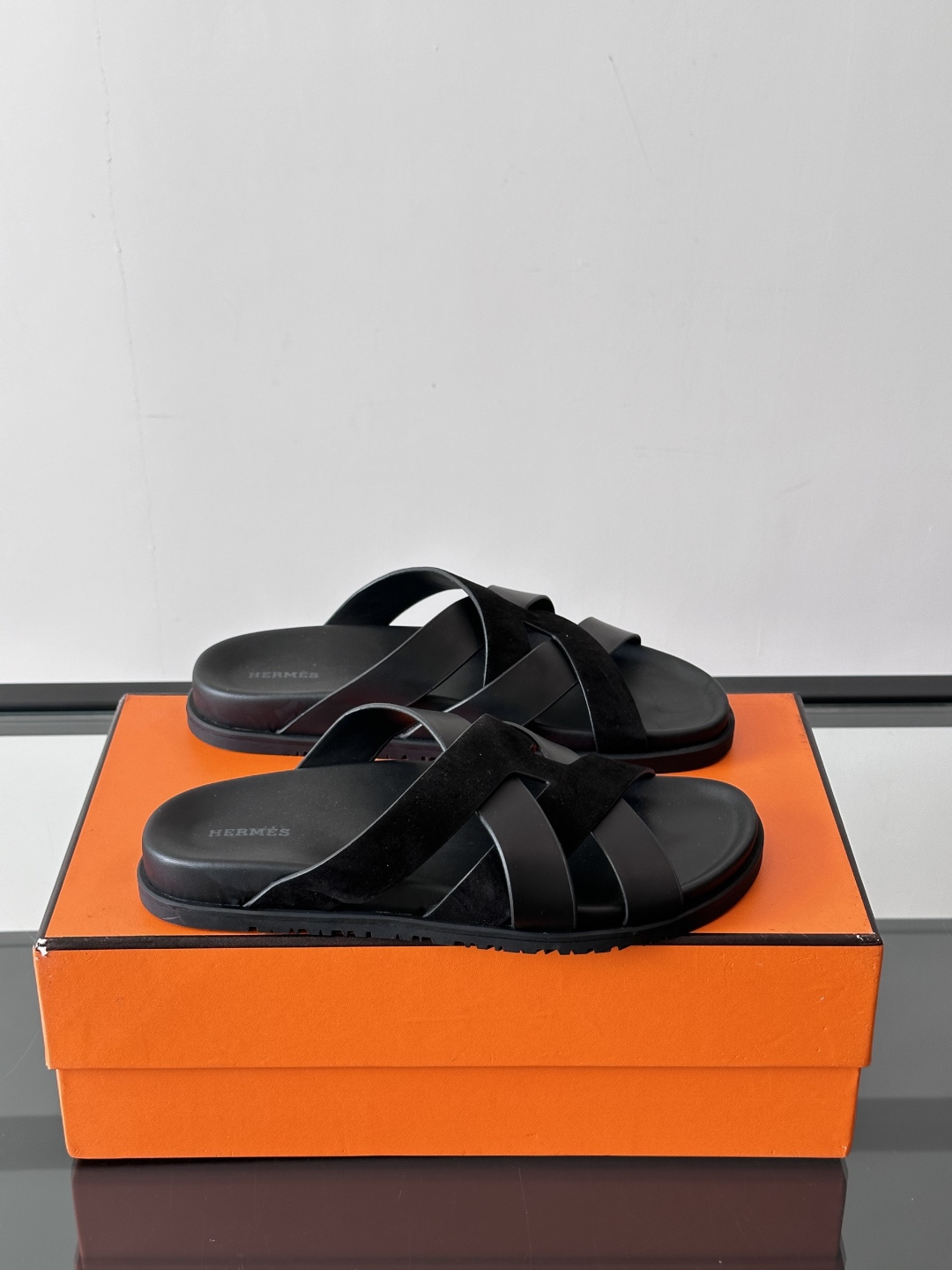 Hermes 爱马仕新款 Kazimir凉鞋 男士拖鞋 。2025夏季二舅拖鞋凉拖鞋🥿上脚超级轻盈舒适,而且百搭各种风格,超级有范!编织饰带和小牛皮机能凉鞋。