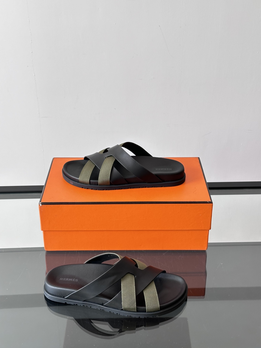 Hermes 爱马仕新款 Kazimir凉鞋 男士拖鞋 。2025夏季二舅拖鞋凉拖鞋🥿上脚超级轻盈舒适,而且百搭各种风格,超级有范!编织饰带和小牛皮机能凉鞋。